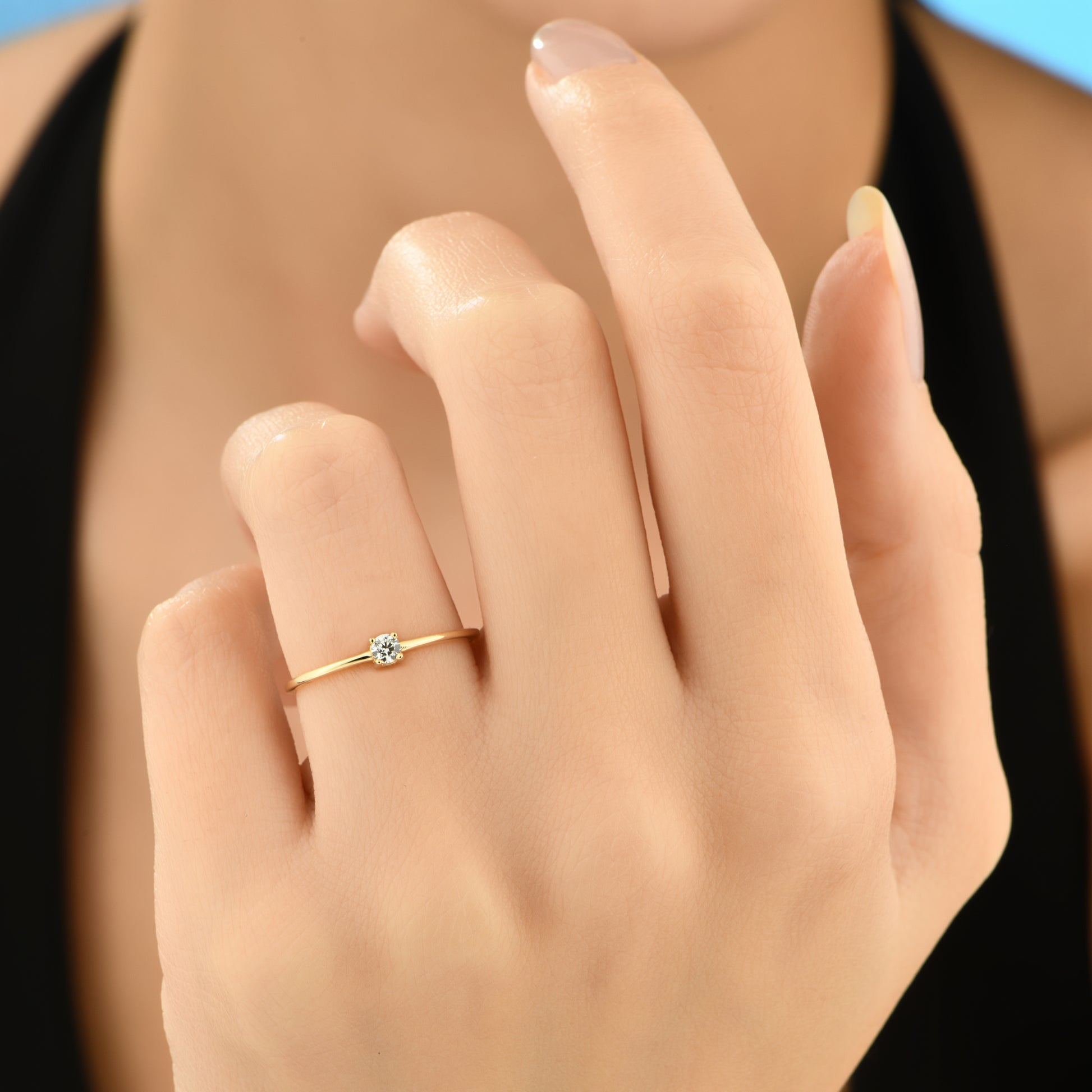 4 Tırnaklı Minimal Altın Tektaş Yüzük