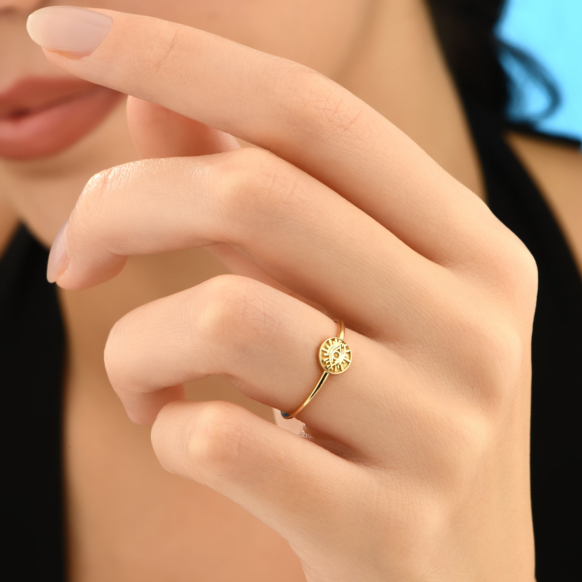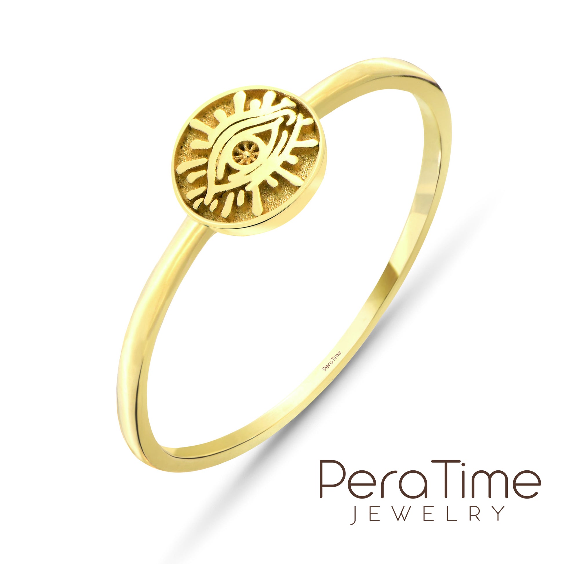 Antik Nazar Göz 14 Ayar Altın Yüzük