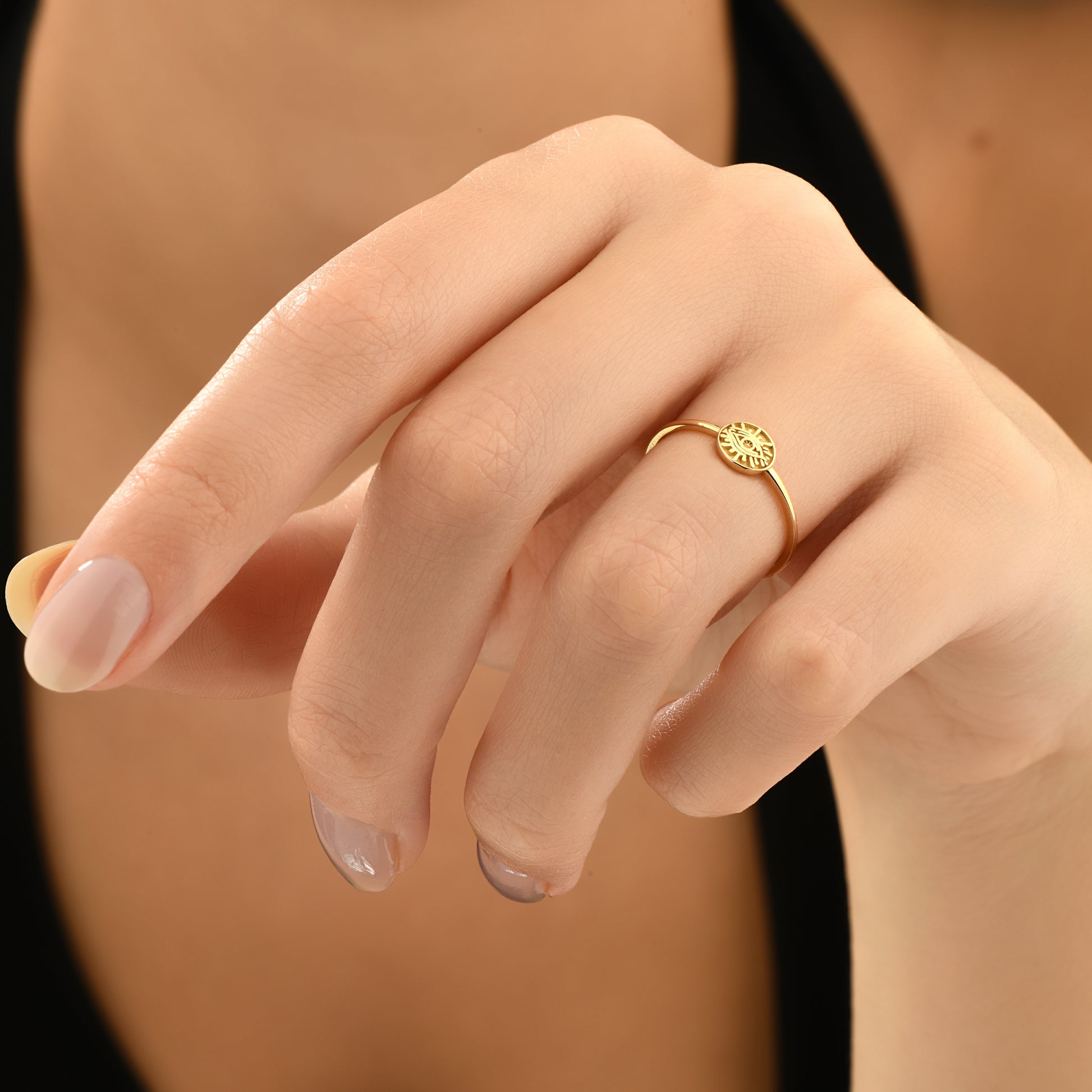 14 ayar altından üretilmiş bu antik tarz nazar göz yüzük, hem şık hem de anlamlı bir tasarım sunar. Geleneksel nazar motifi, kötü enerjilerden korunmayı simgelerken modern işçiliğiyle stilinize zarif bir dokunuş katar. Günlük kullanımda veya özel anlarda rahatlıkla tercih edilebilen bu yüzük, minimalist detaylarıyla tek başına veya diğer yüzüklerle kombinlenerek şıklığınızı tamamlar.