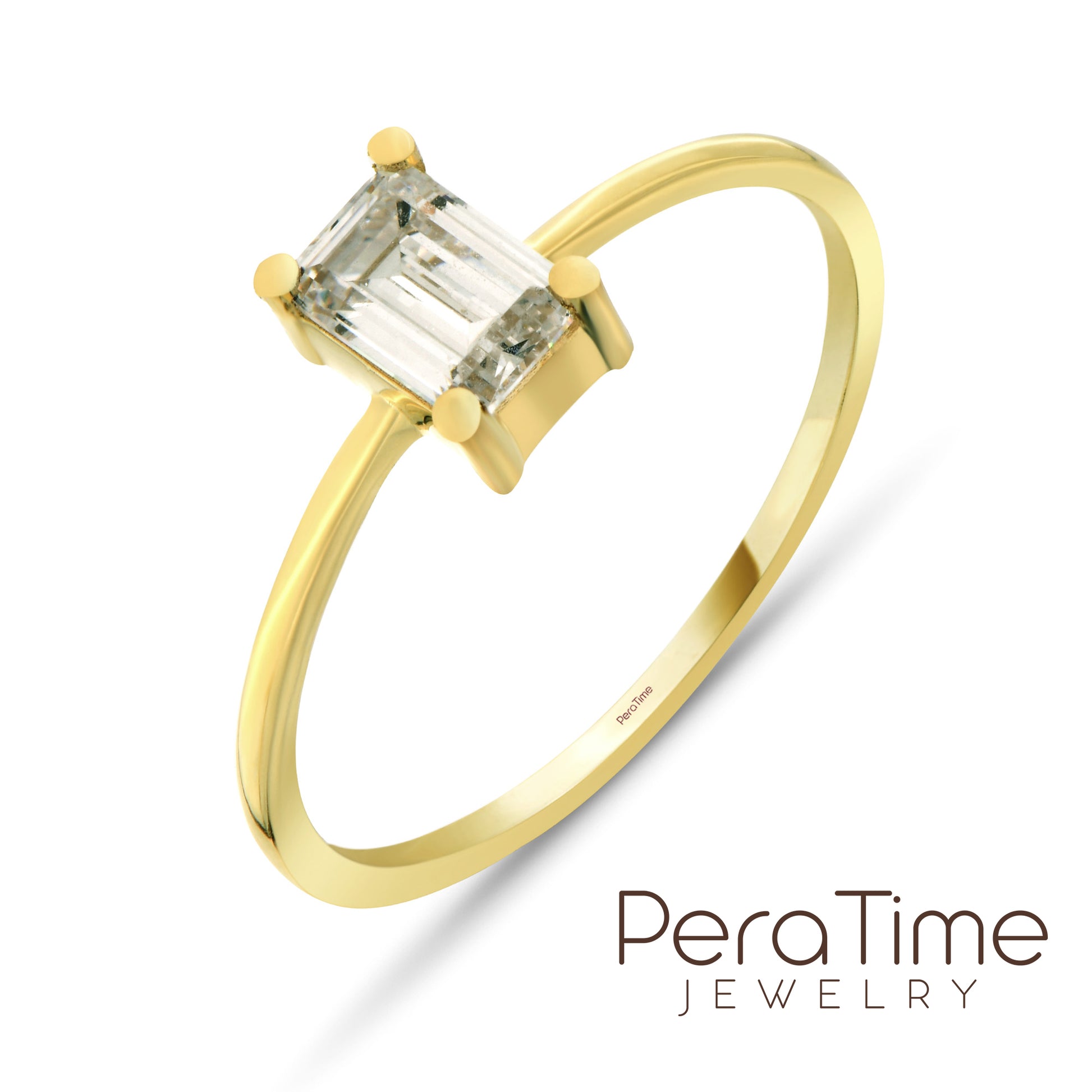 Baget kesim taşın ışıltısıyla öne çıkan PeraTime 14 ayar baget tektaş altın yüzük, sade ama etkileyici duruşuyla stilinize zarafet katar. Tektaş yüzüğün klasik anlamını modern bir yorumla sunan bu model, özel günlerde sevginizi ifade etmek için de mükemmel bir seçimdir.