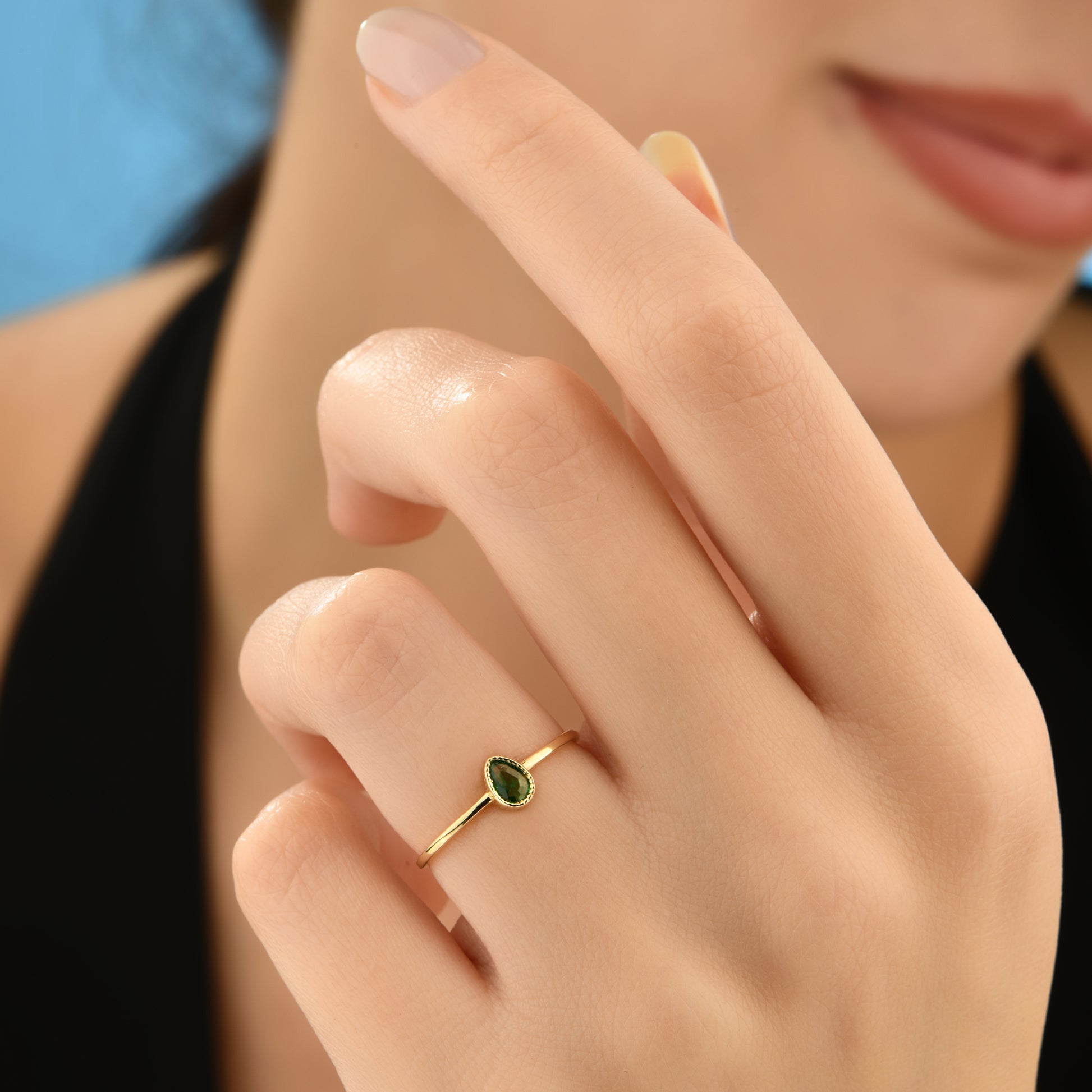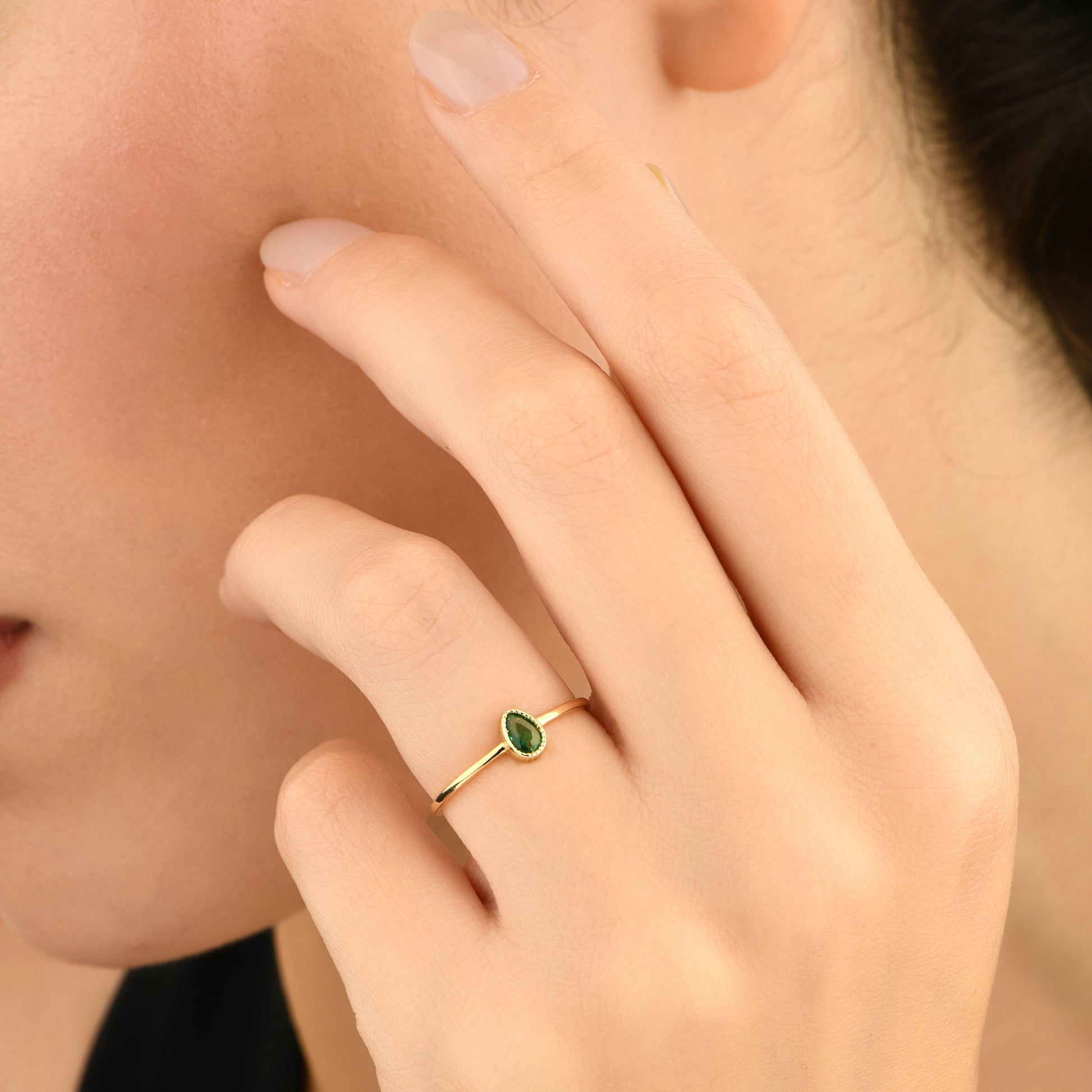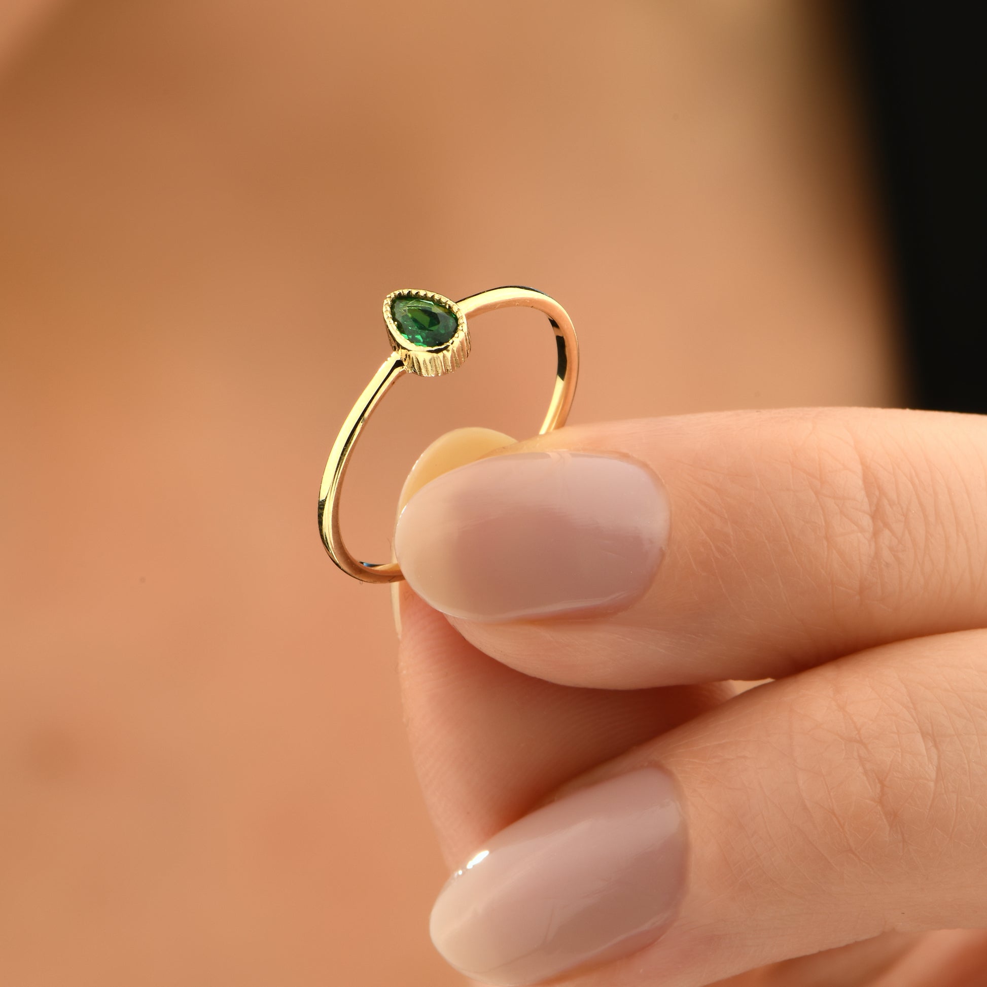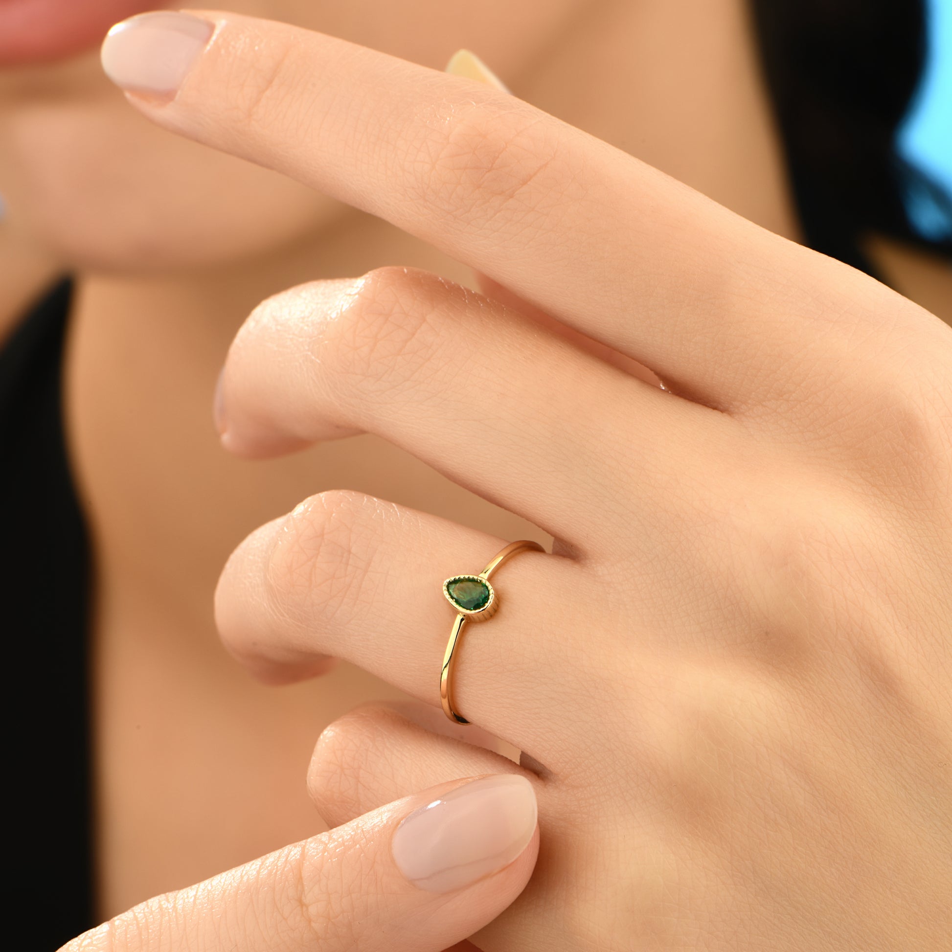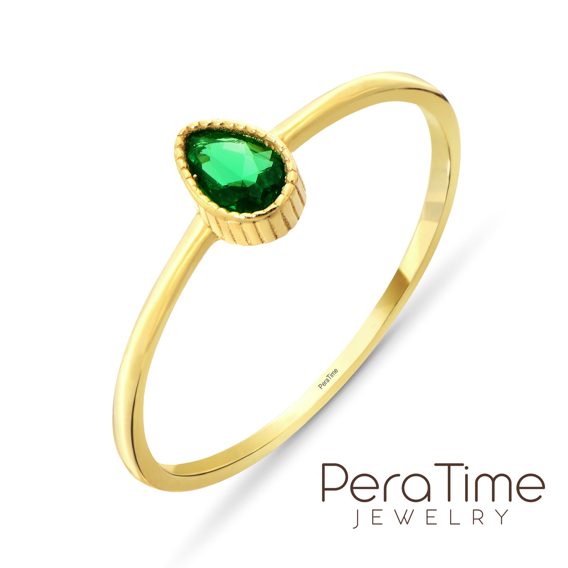 Damla Zümrüt Taşlı 14 Ayar Altın Yüzük