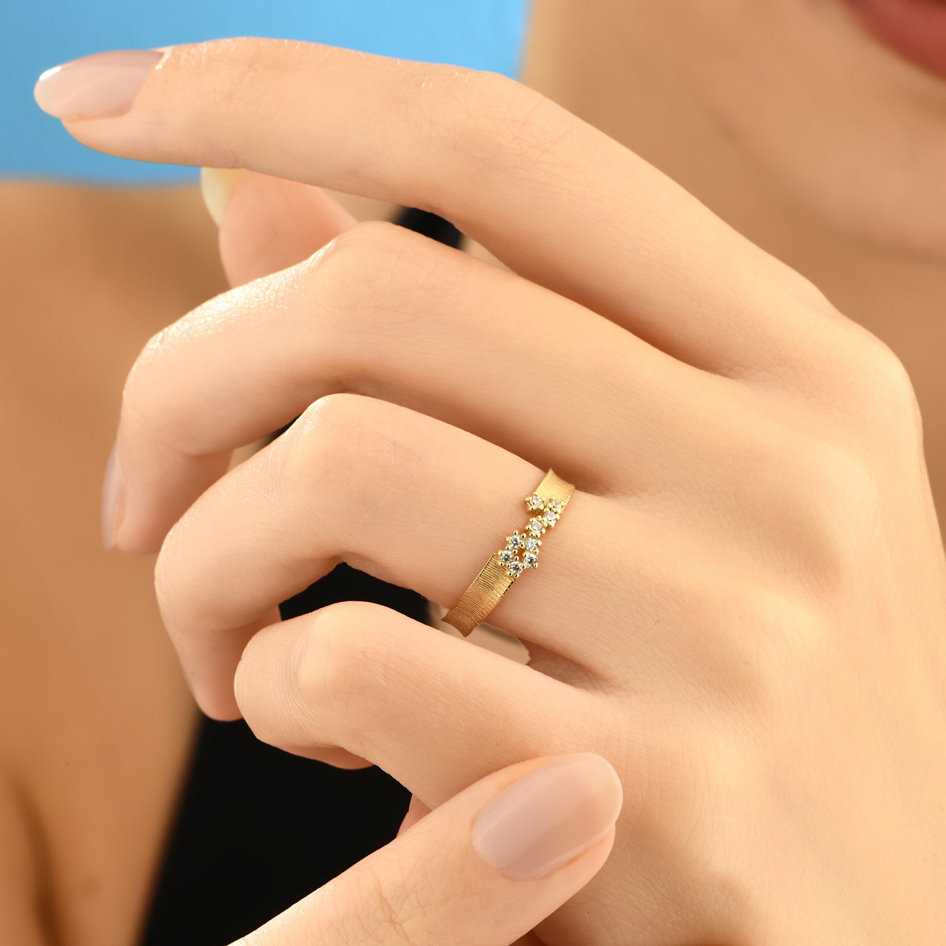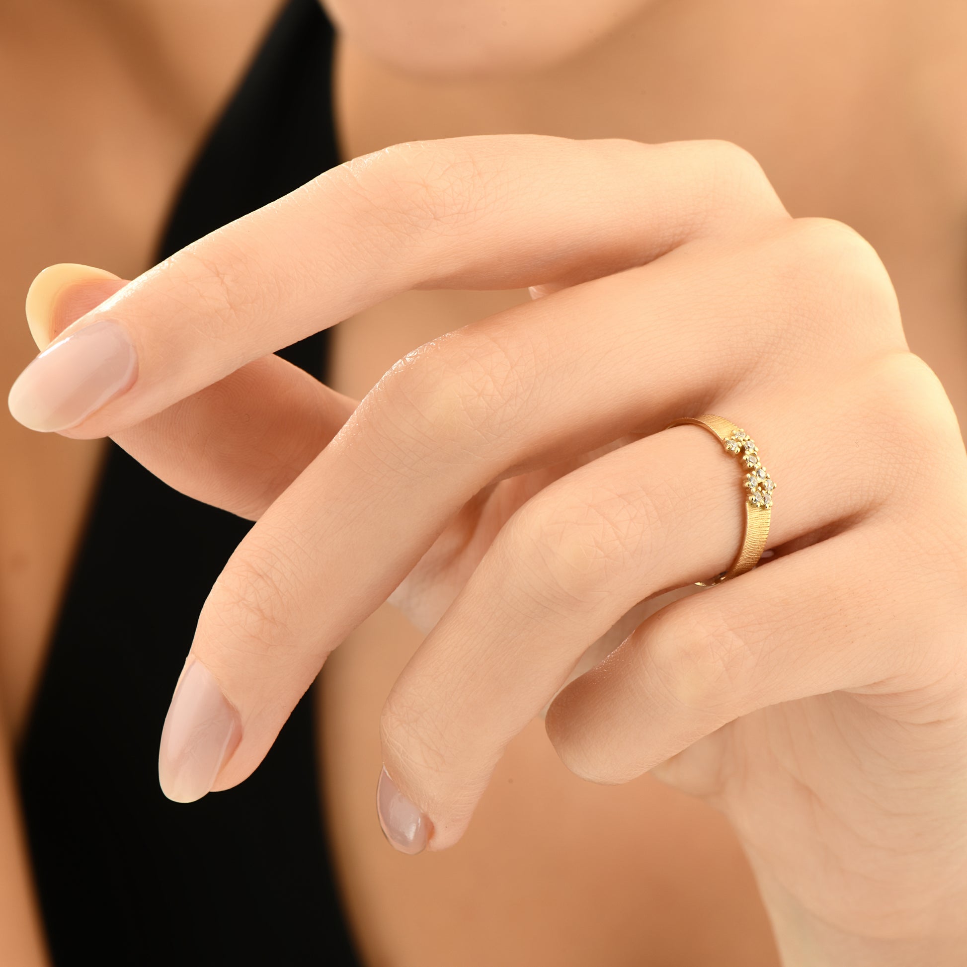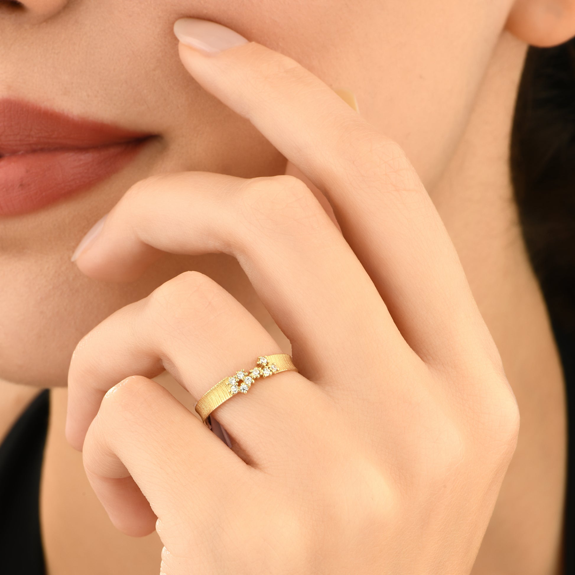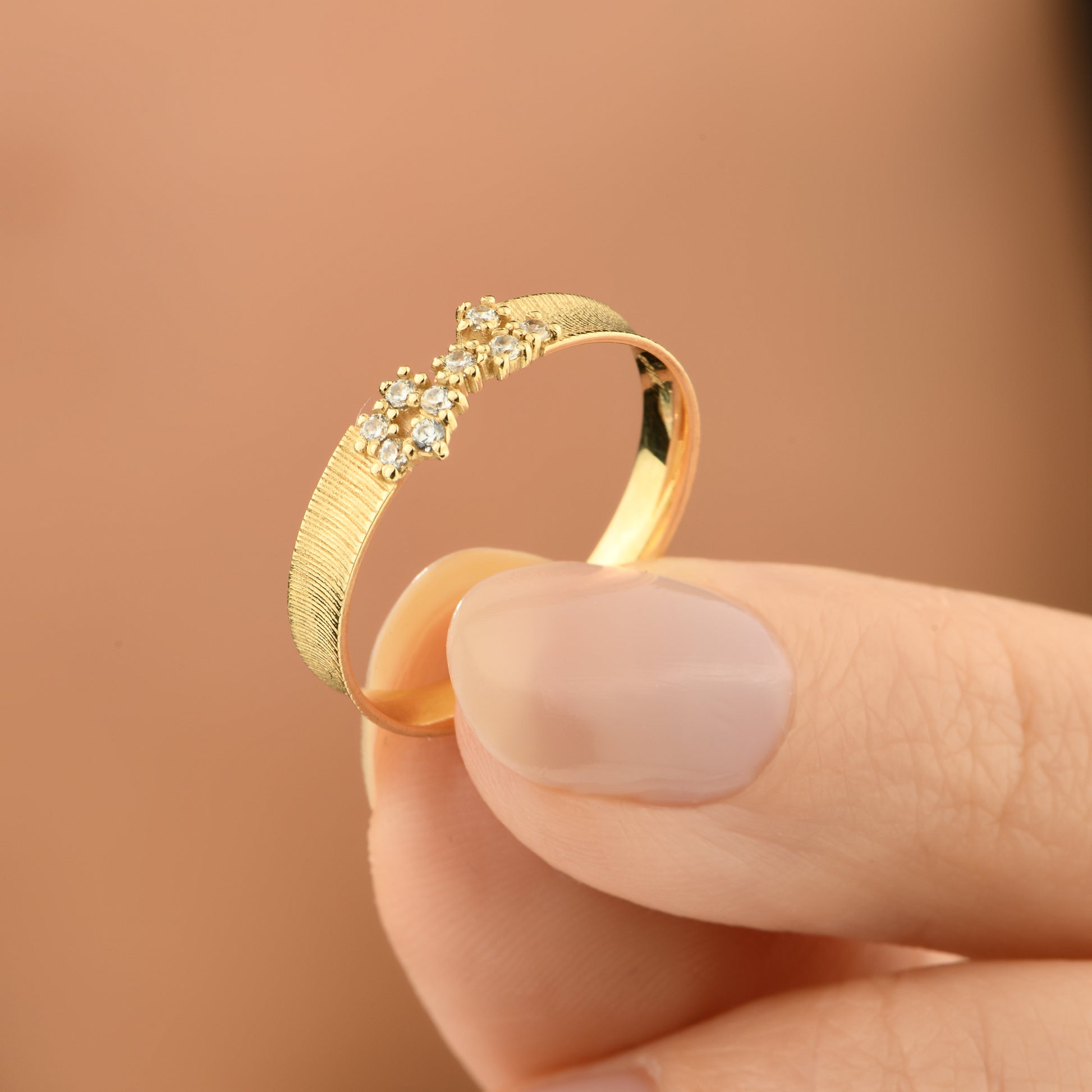 Mat dokulu çiçek tasarımıyla öne çıkan bu 14 ayar altın yüzük, zarif ve şık bir dokunuş katmak isteyenler için mükemmel bir seçim.