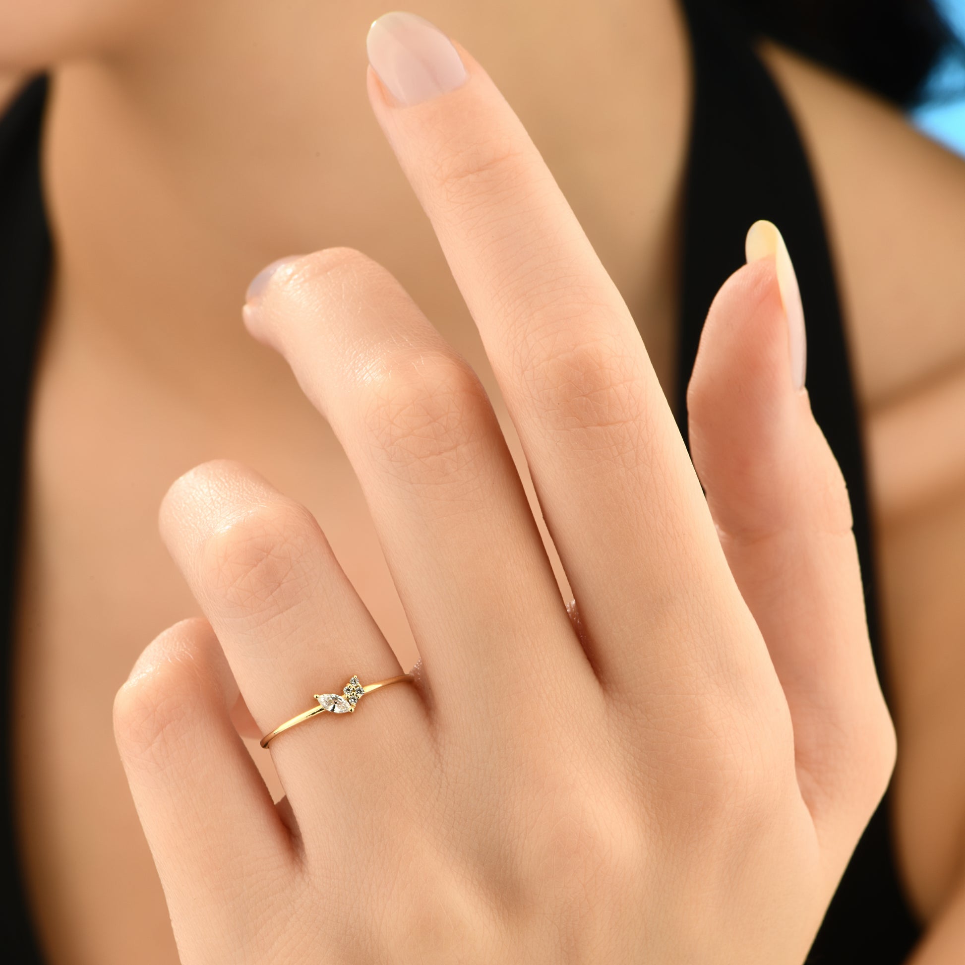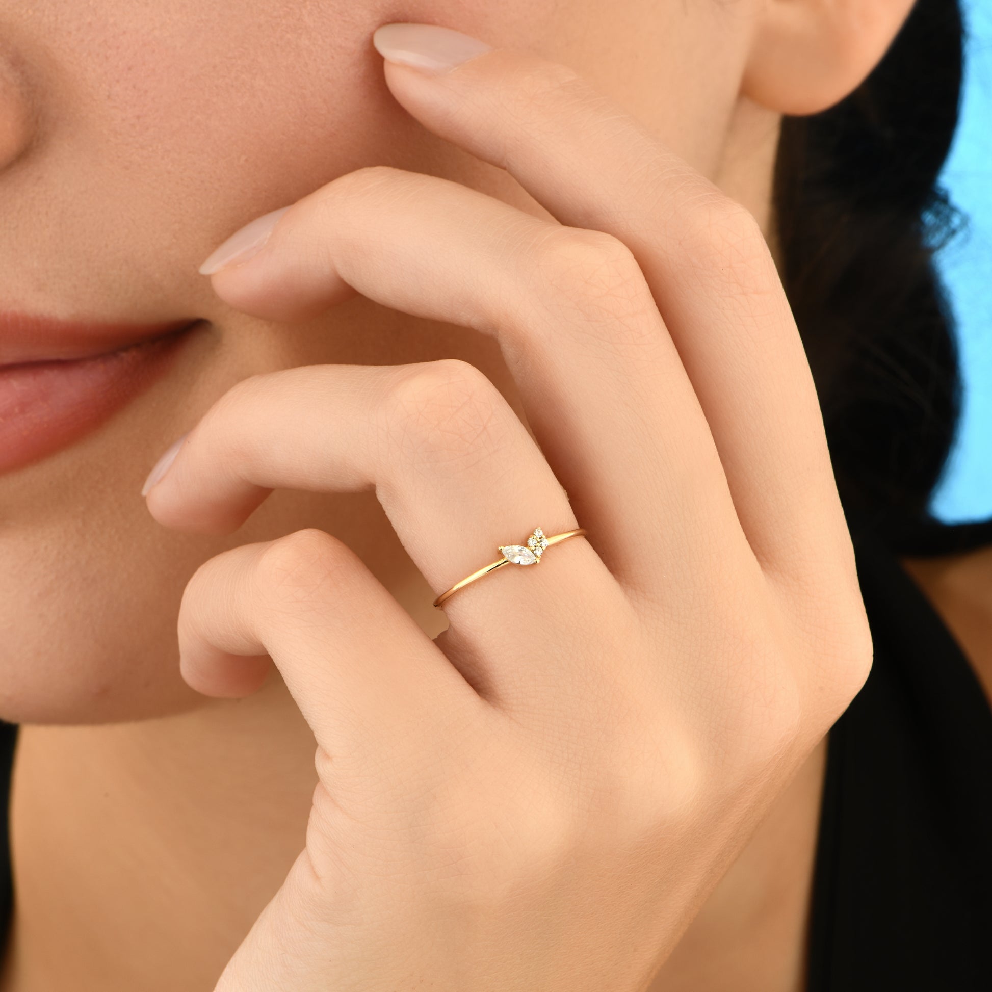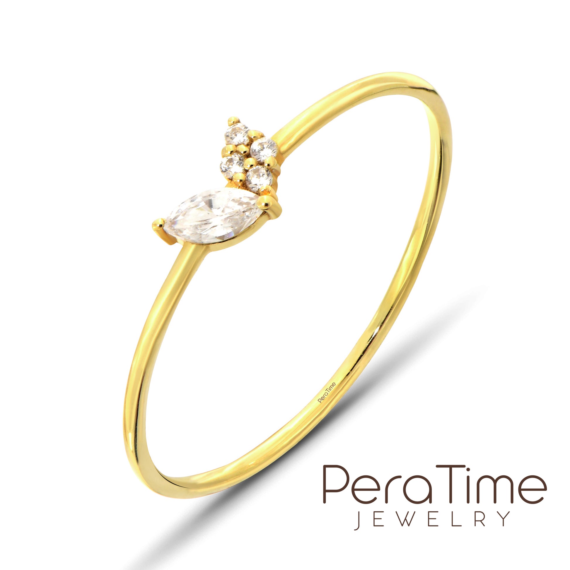 Minimal Markiz Tasarım 14 Ayar Altın Yüzük