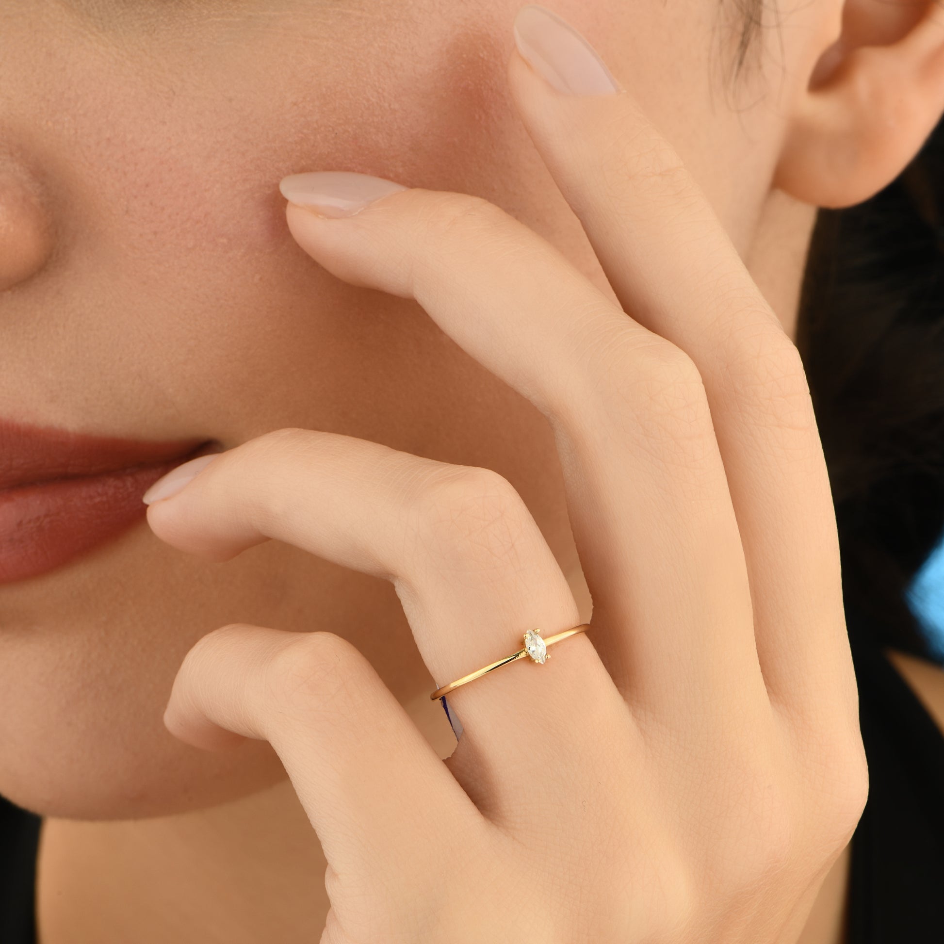 Zarifliği ve sadeliği bir araya getiren PeraTime 14 ayar minimal markiz taşlı altın yüzük, modern tasarımıyla dikkat çeker. İnce yapısı ve göz alıcı markiz kesim taşı ile günlük kullanımda da özel günlerde de şıklığınızı tamamlar.