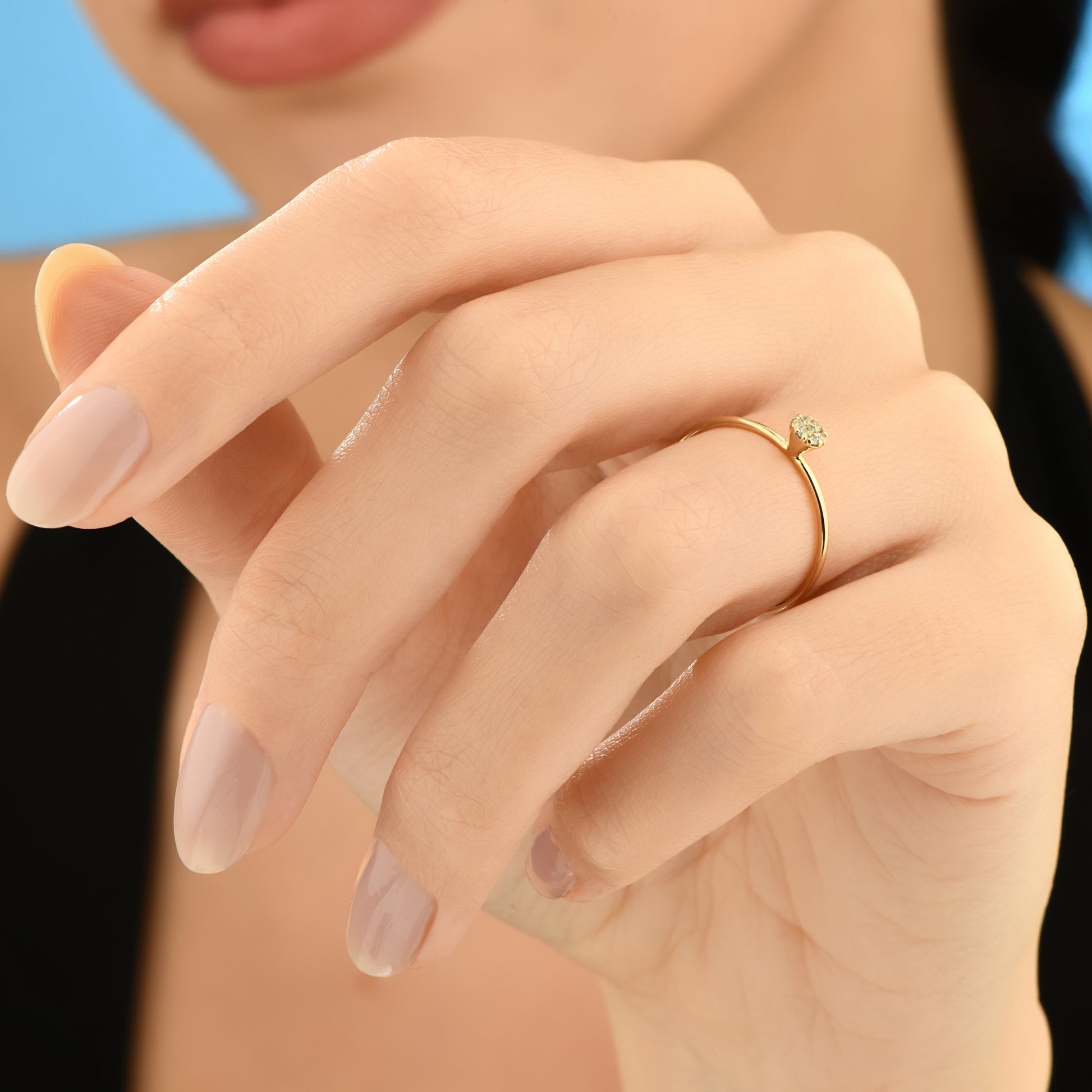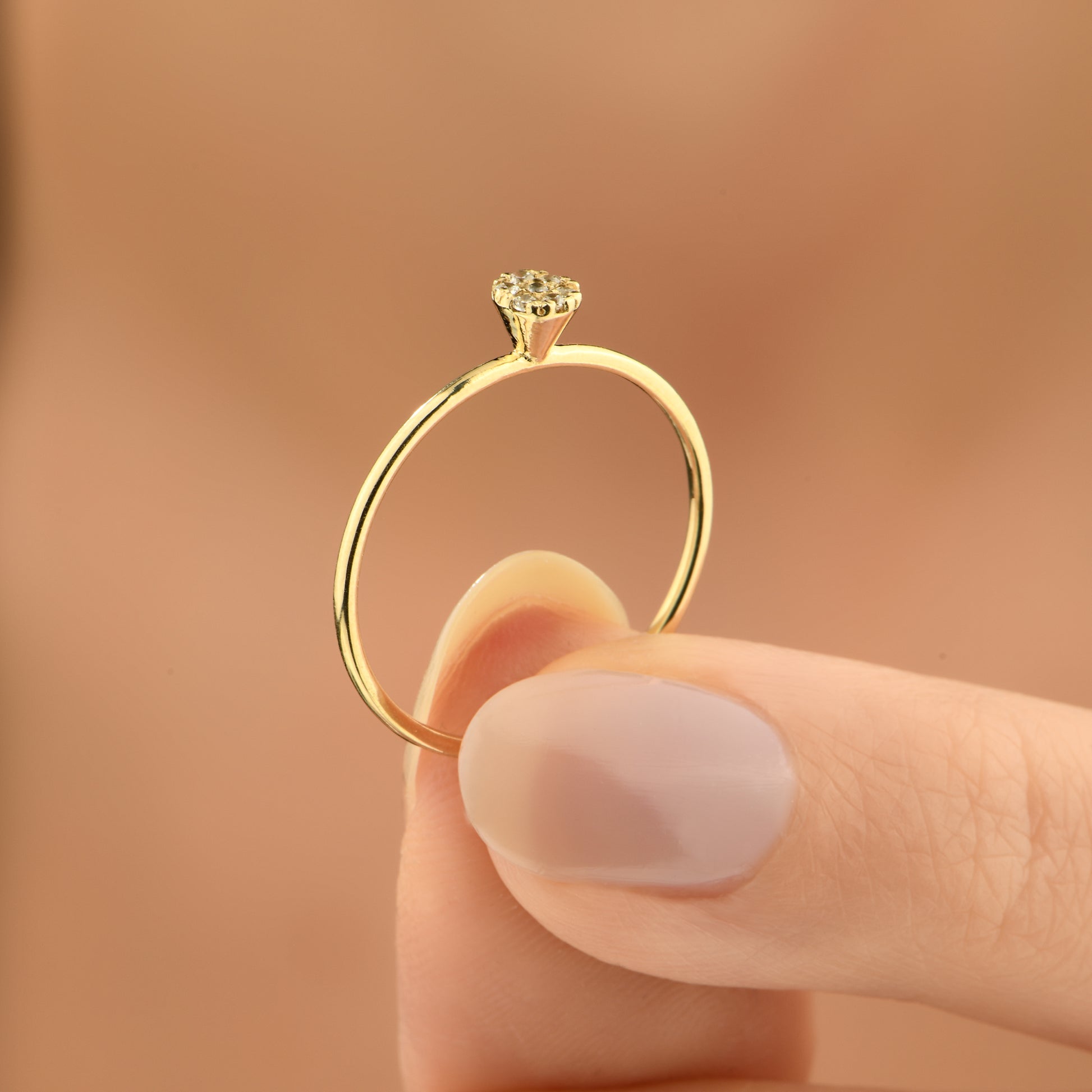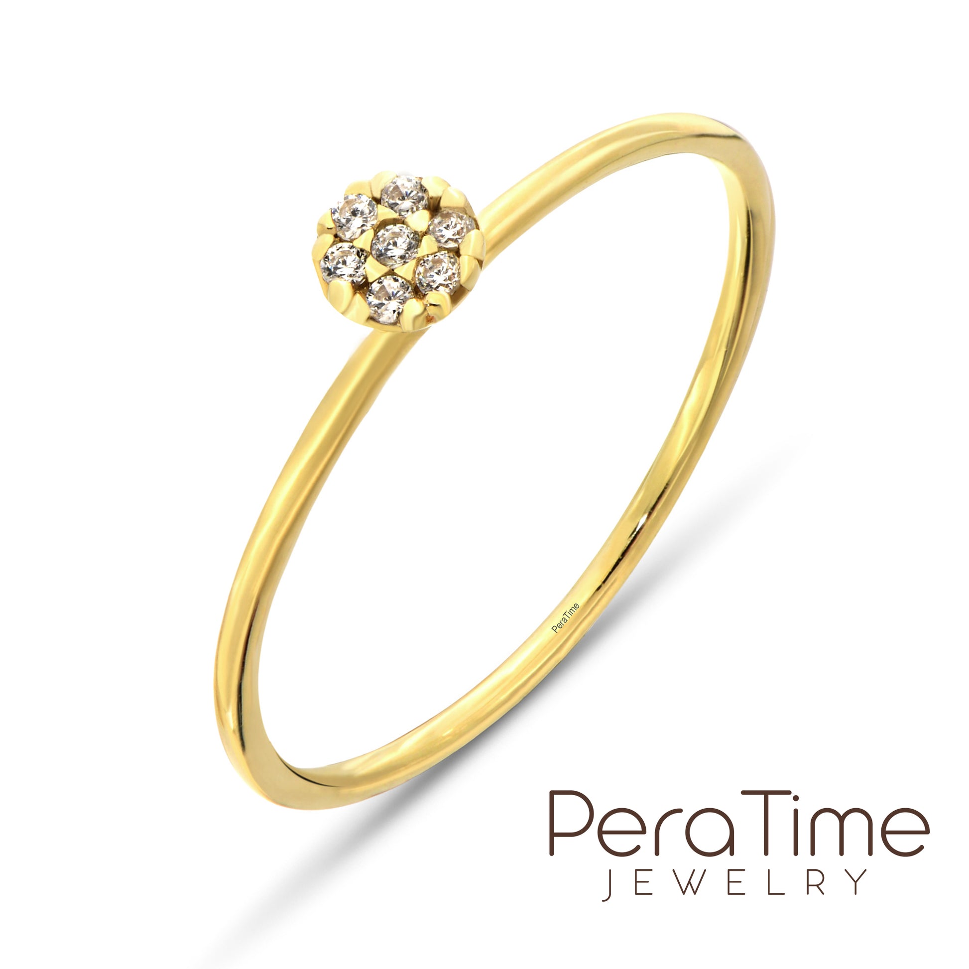 Papatya formunda tasarlanmış 14 ayar altın yüzük, minimal ve şık çizgileriyle öne çıkar. Zirkon taş detayı, yüzüğe zarif bir ışıltı ekler ve stilinizi tamamlar.