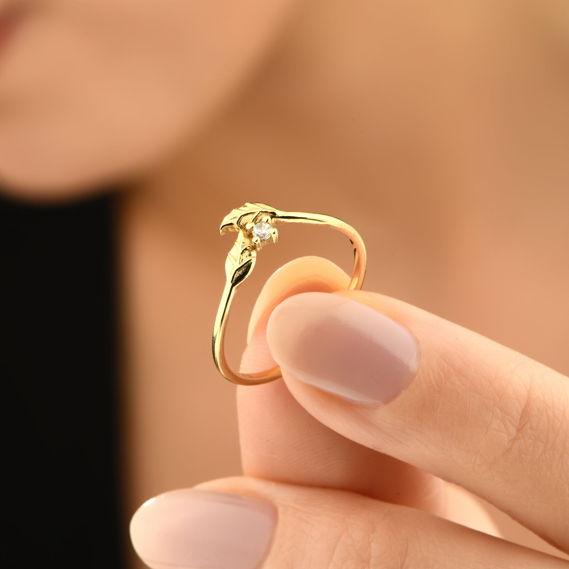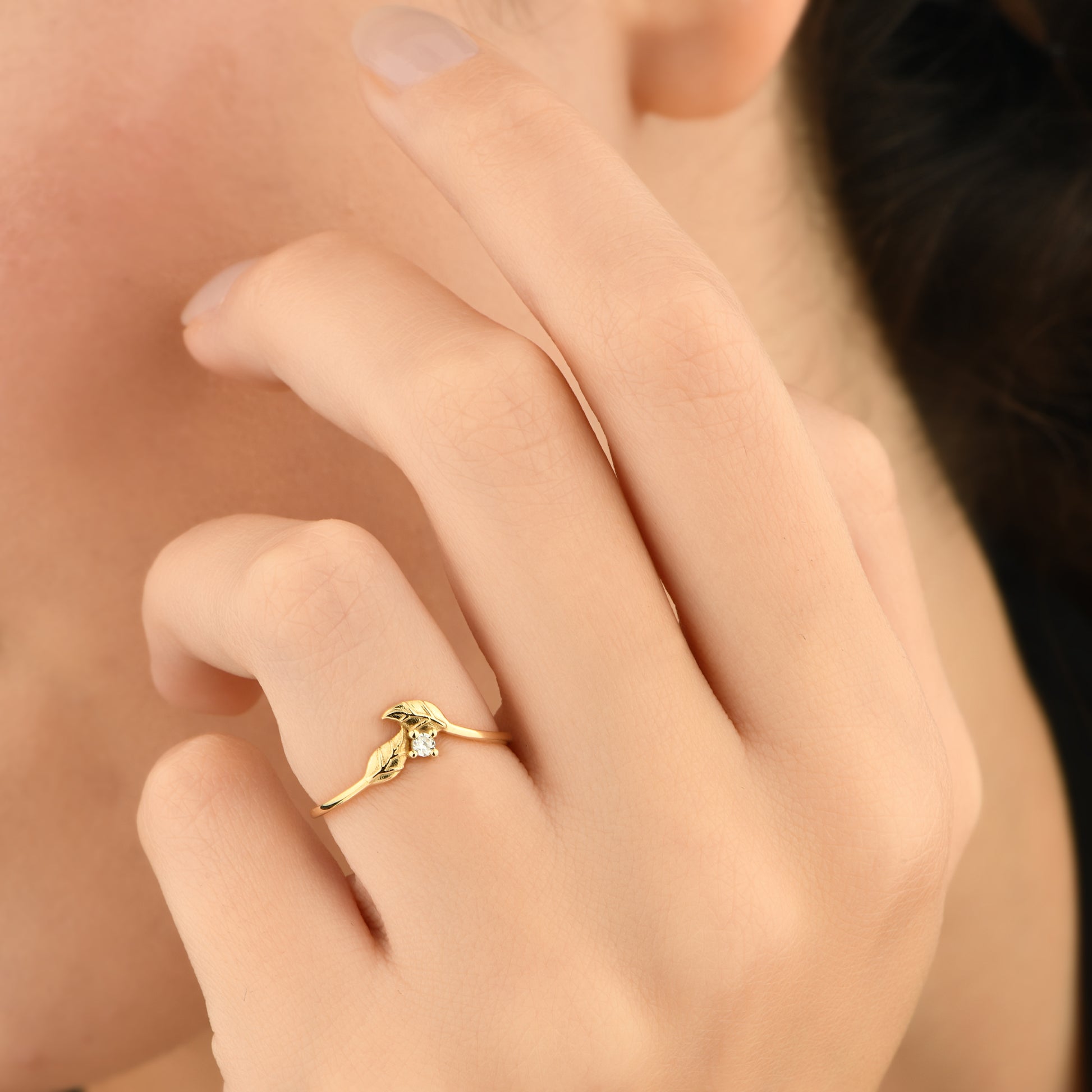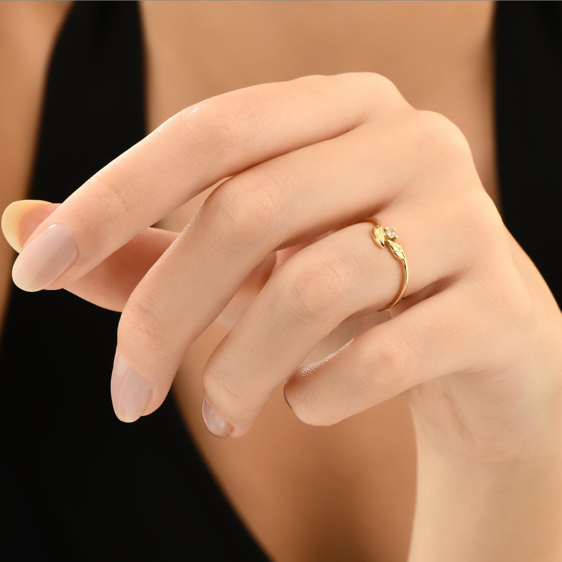 Minimal Taşlı Defne 14 Ayar Altın Yüzük