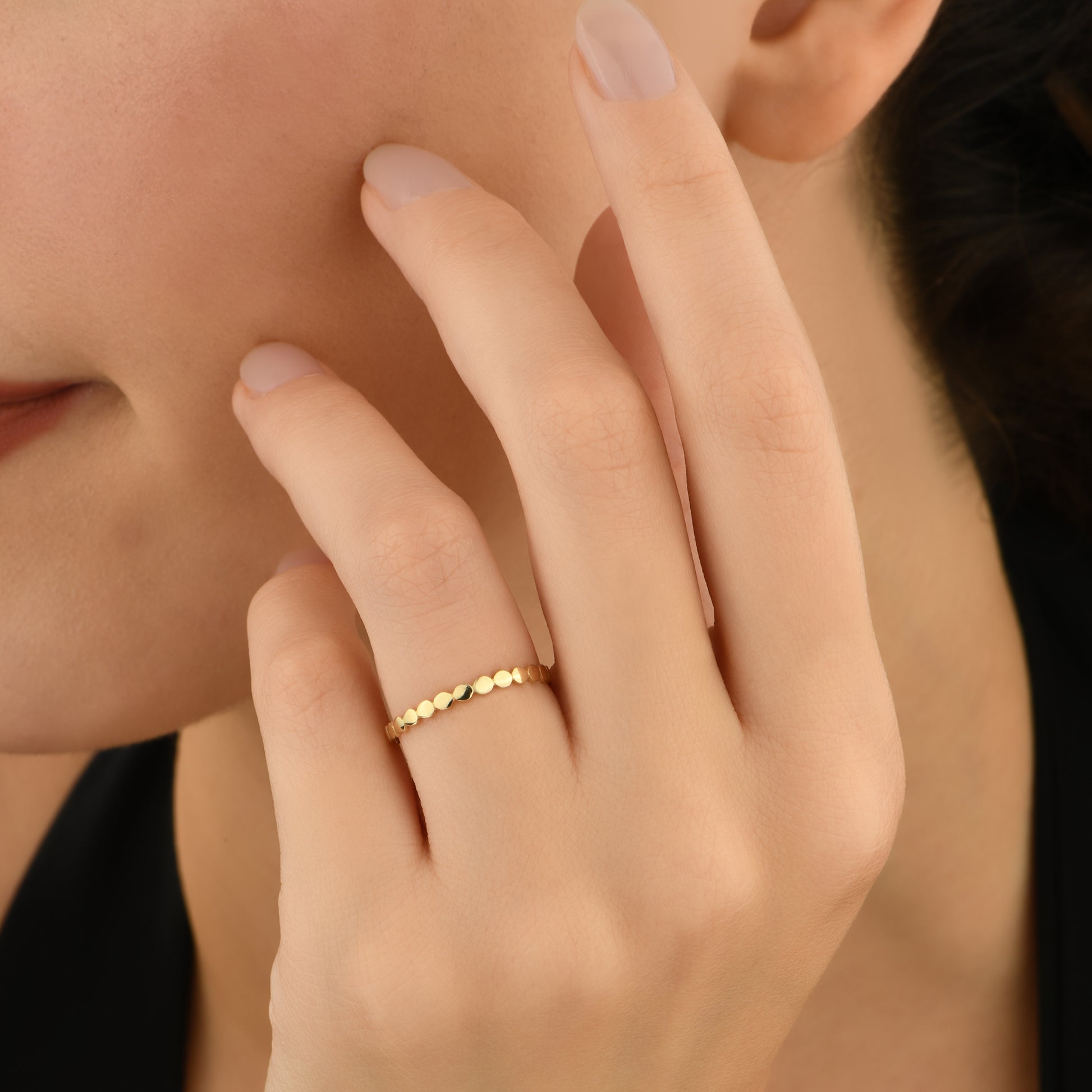 Petek Model Tamtur Minimal Yüzük 14 Ayar Altın