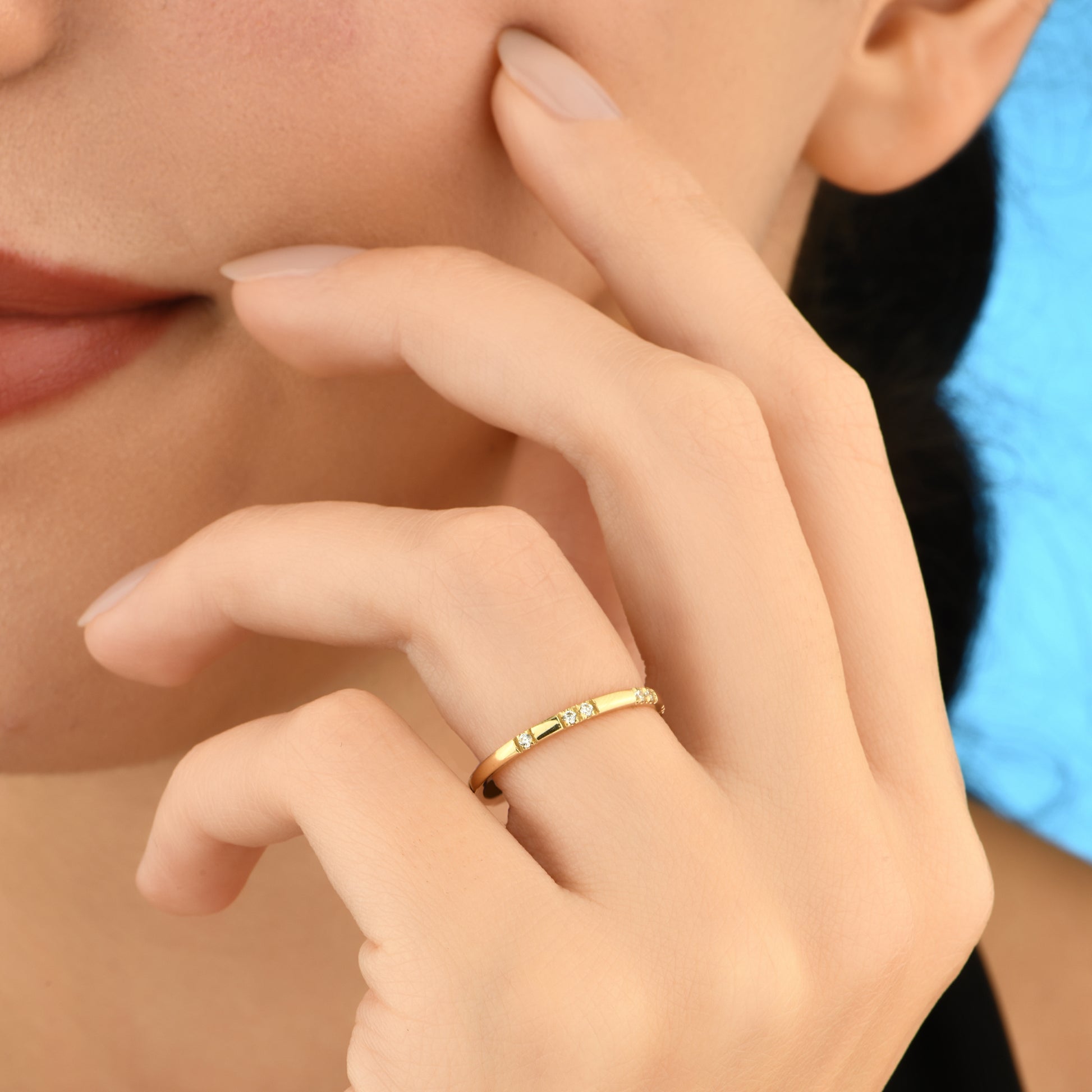 Klasik alyans şıklığını zarif taş detaylarıyla birleştiren bu yüzük, 14 ayar altının ışıltısıyla parmağınızda göz kamaştırıcı bir duruş sergiler. Hem günlük kullanım için sade bir şıklık sunar hem de özel günlerinizde anlamlı bir tamamlayıcı olur. Modern çizgisiyle zamansız bir tasarıma sahip olan bu yüzük, sevgi ve bağlılığınızı simgeleyecek en özel parçalardan biridir.