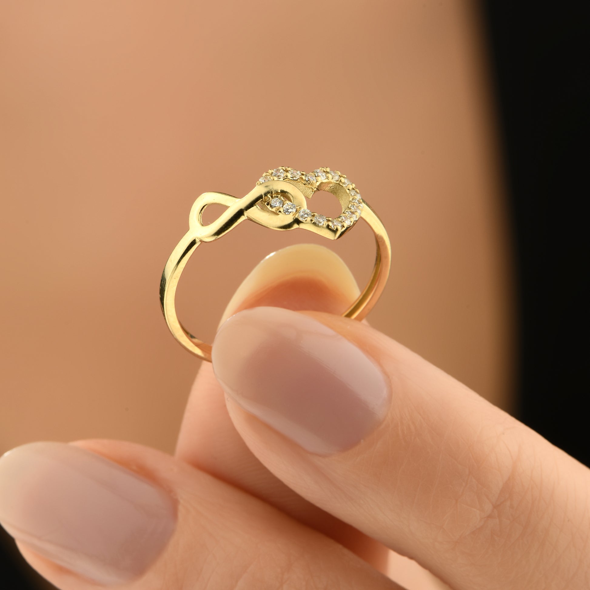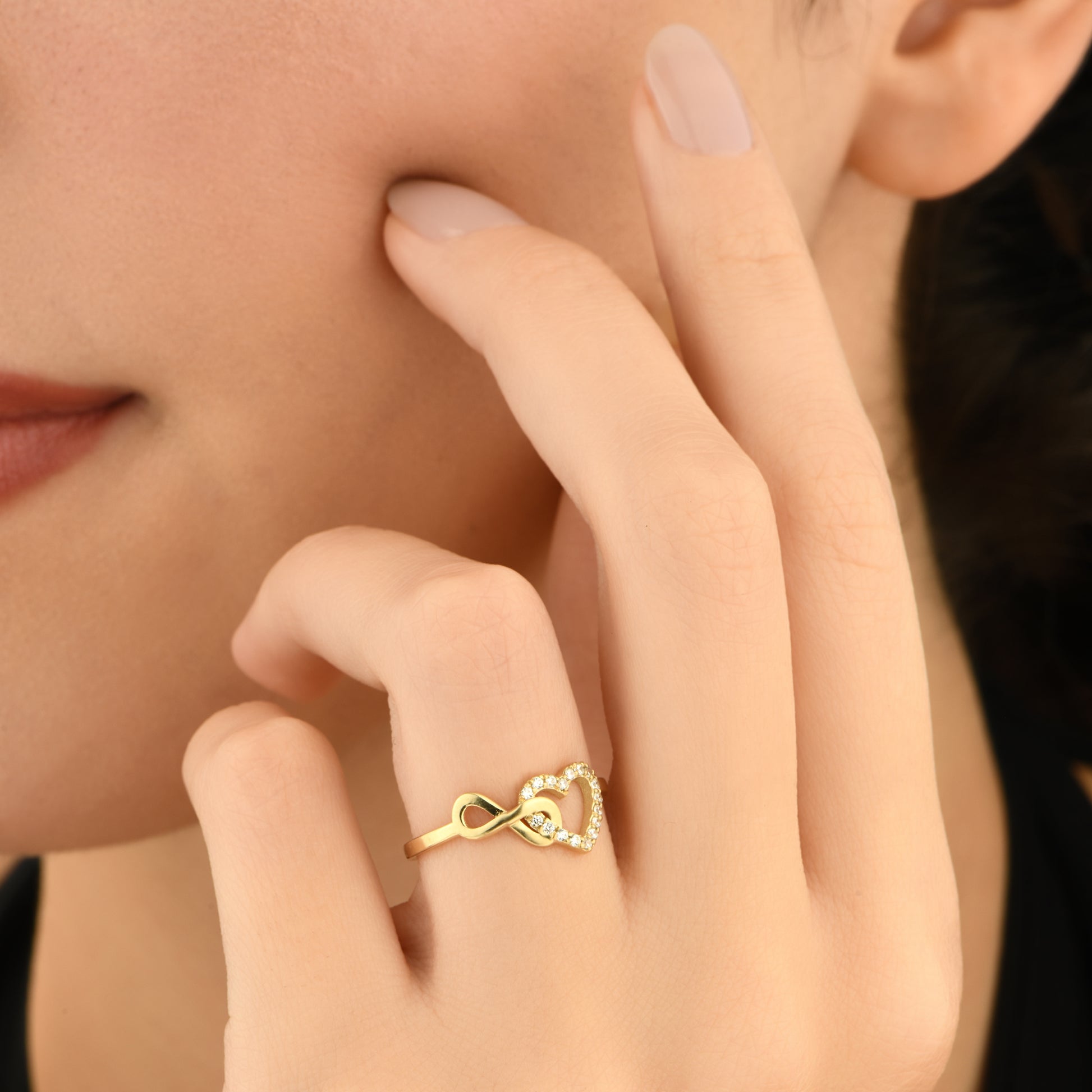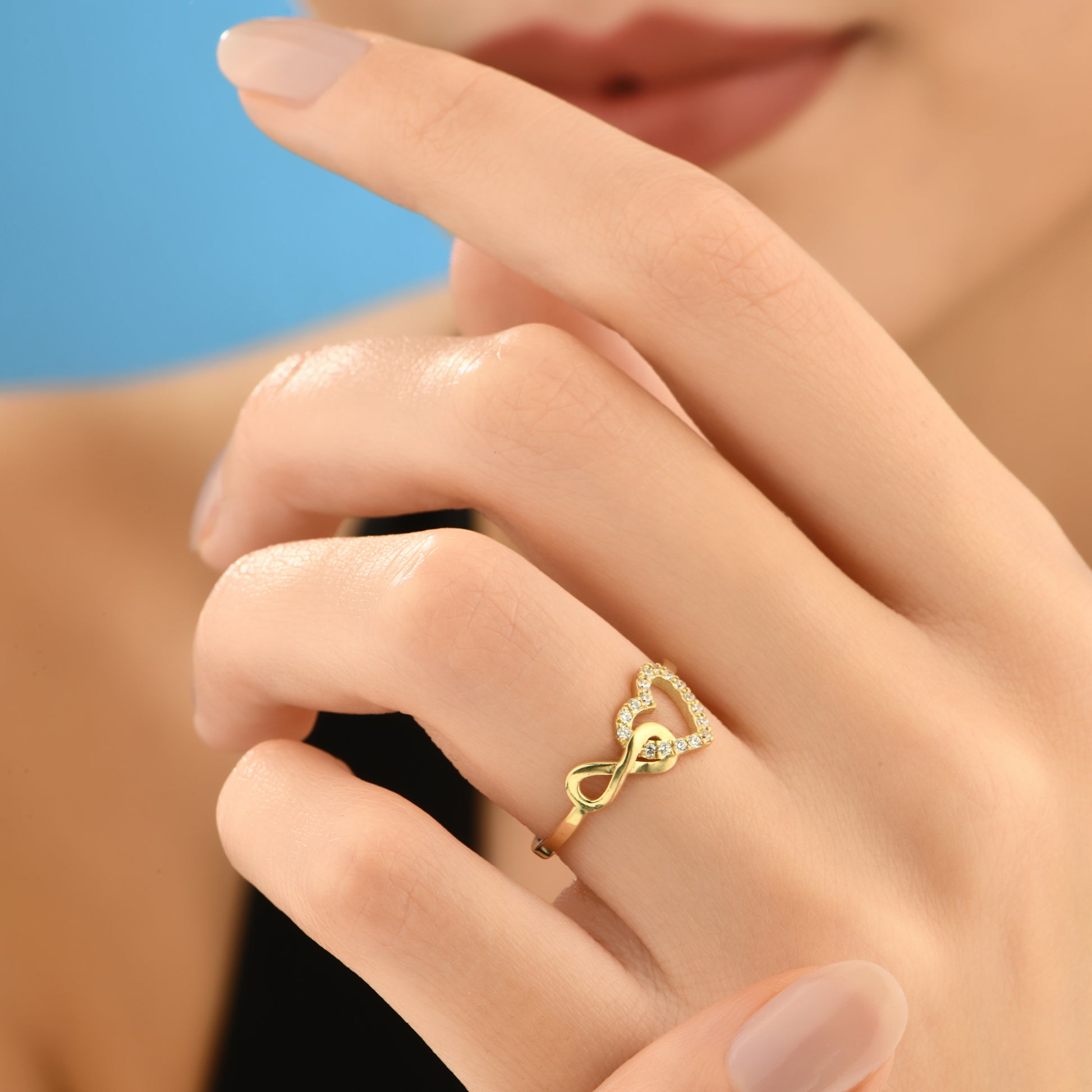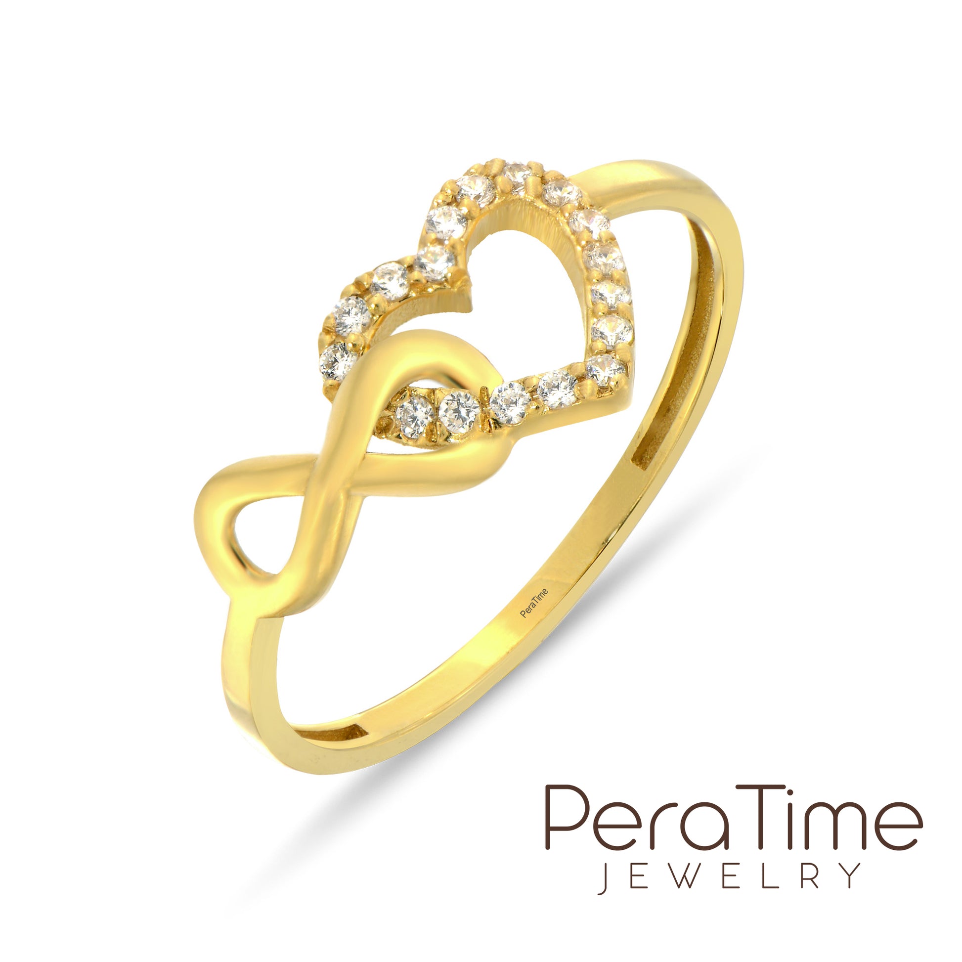 Taşlı Kalp Sonsuzluk Altın Yüzük