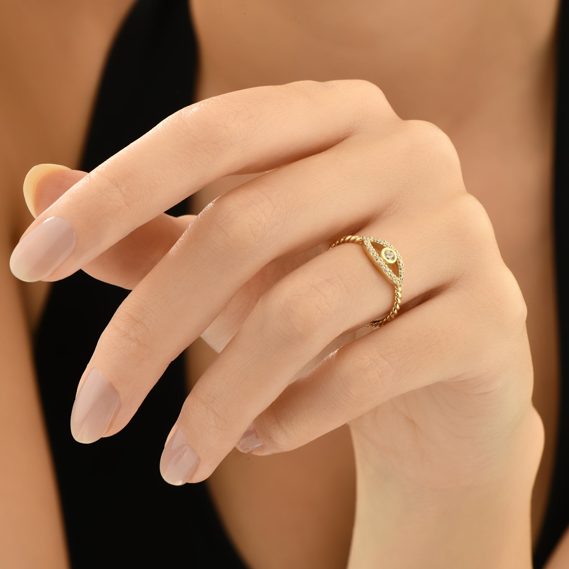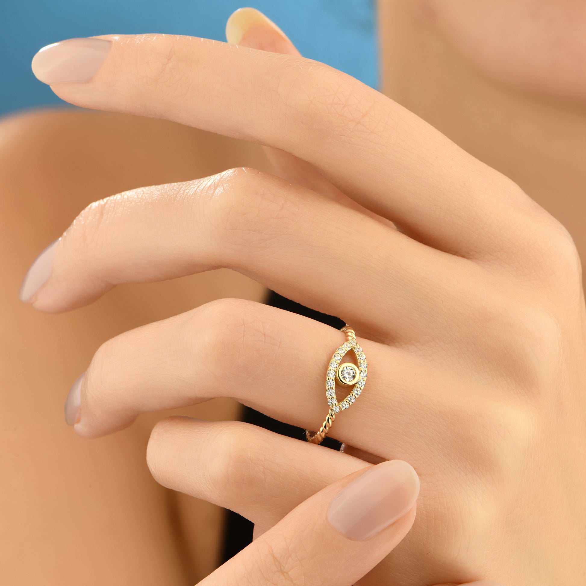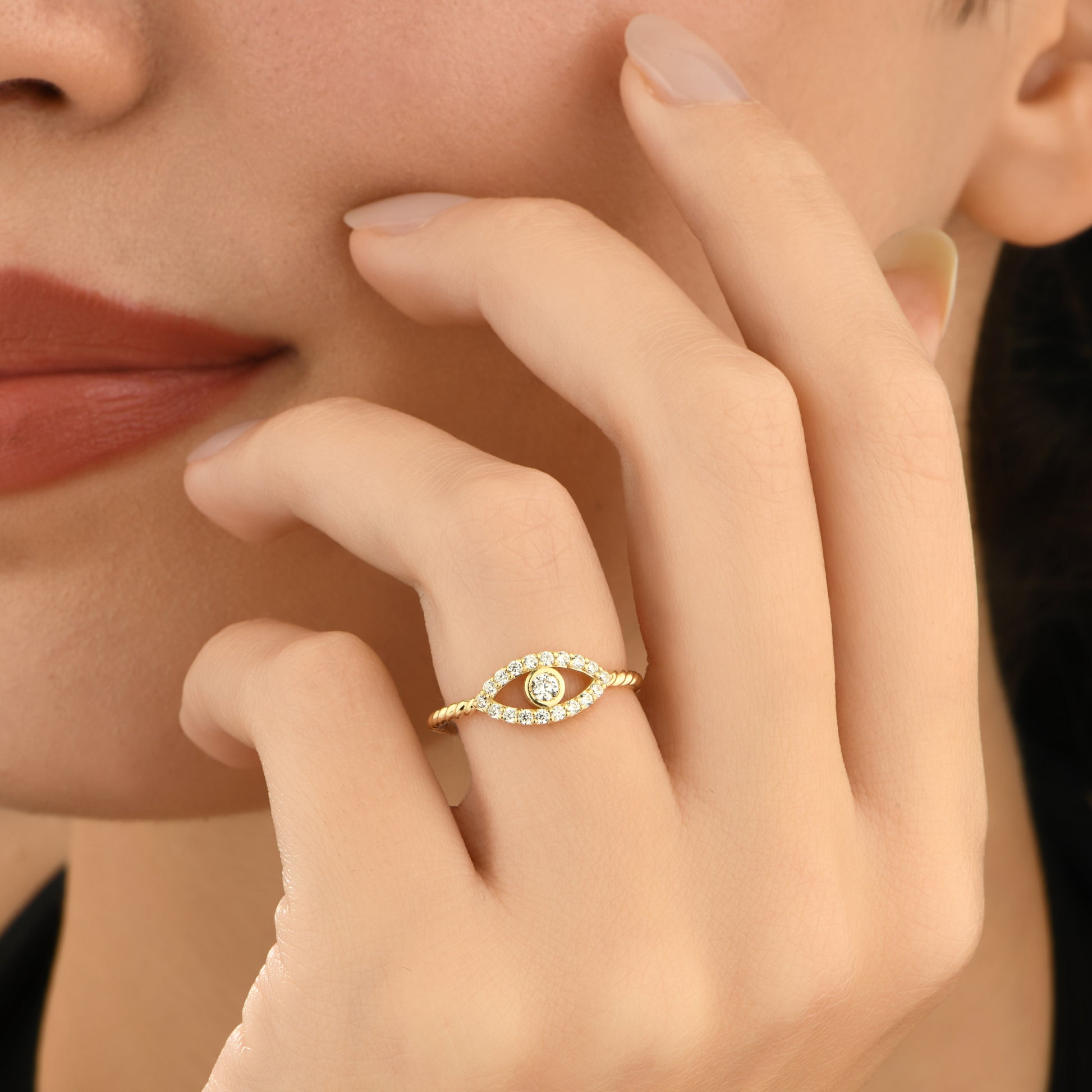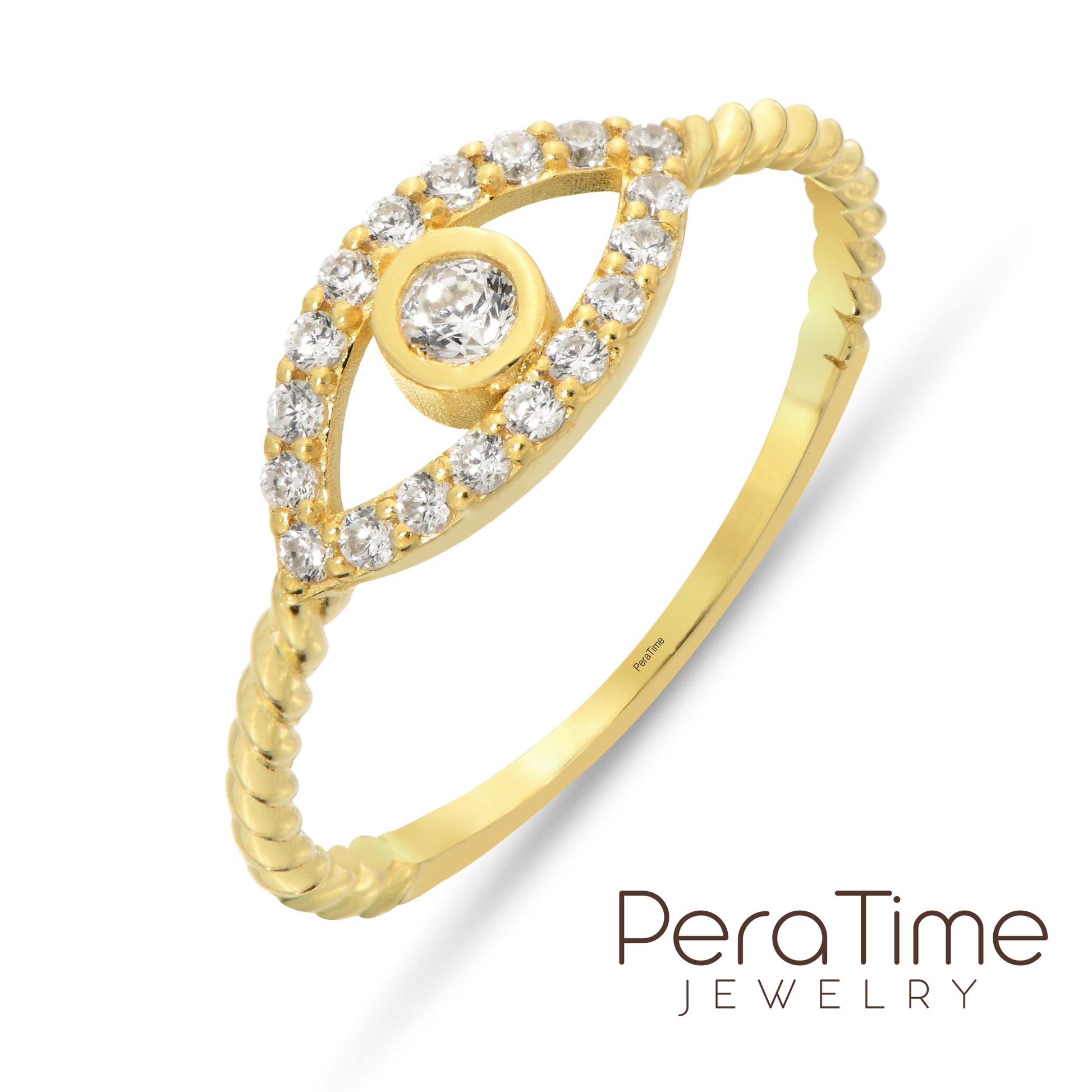 Taşlı Nazar Göz 14 Ayar Yüzük