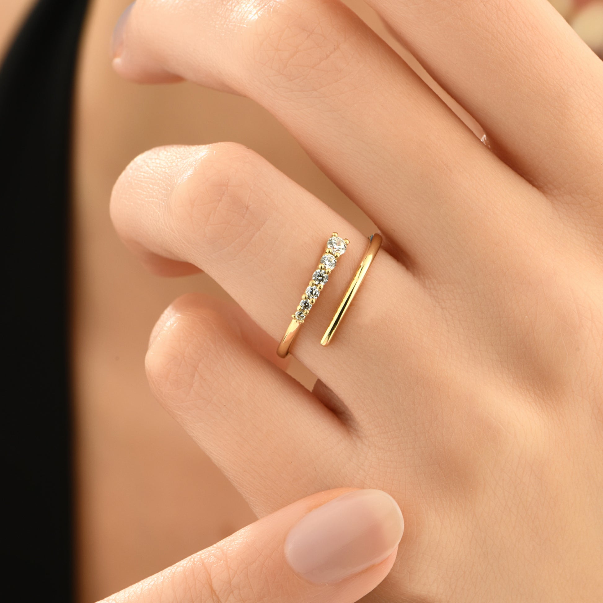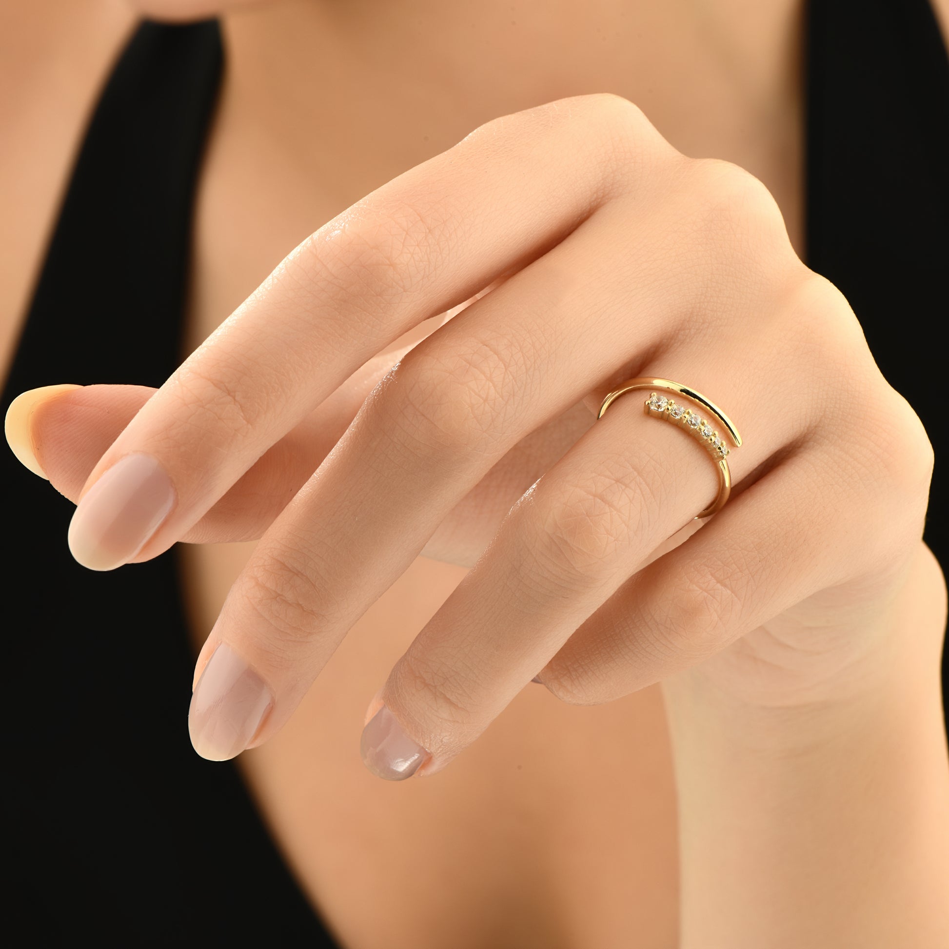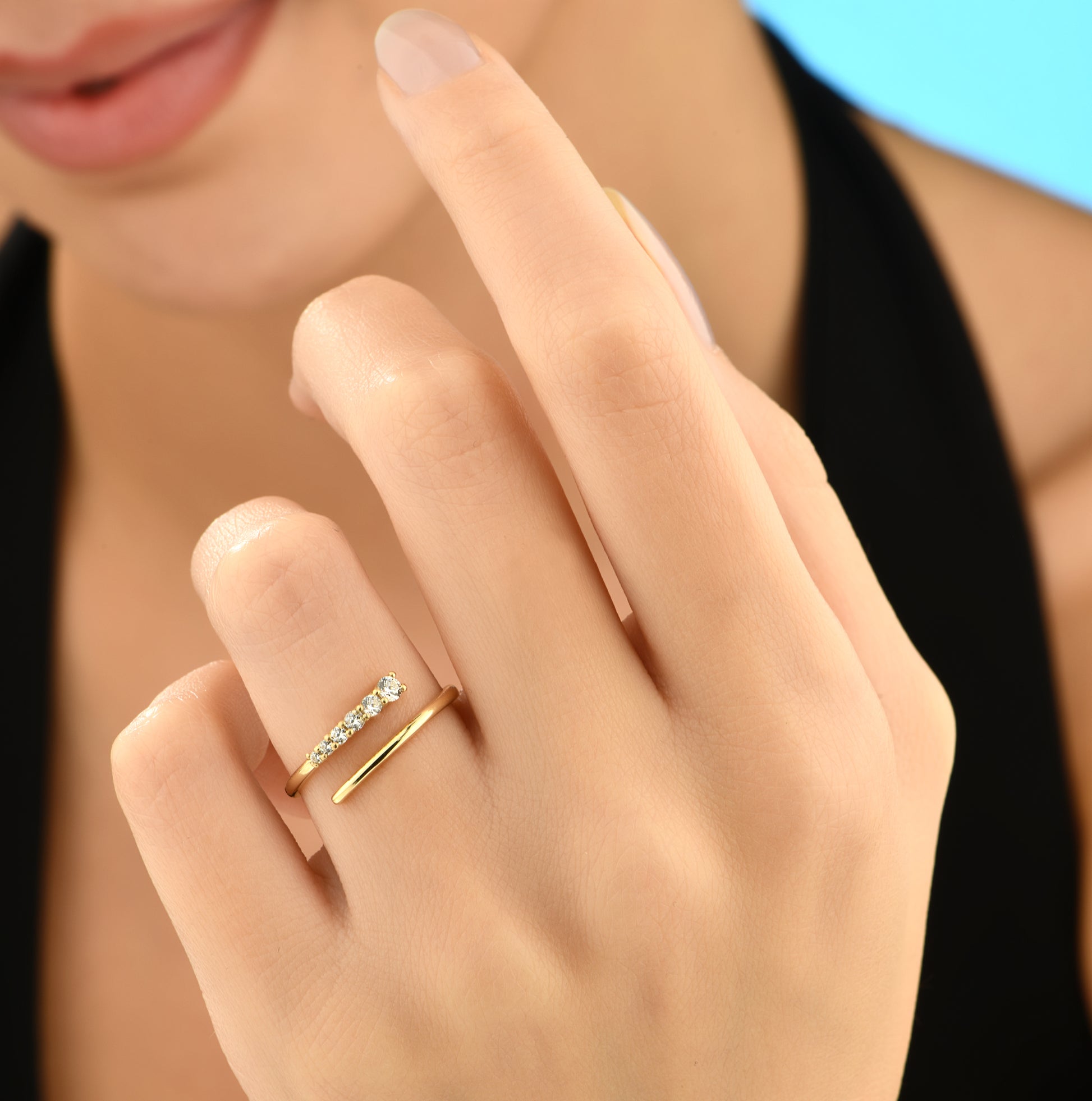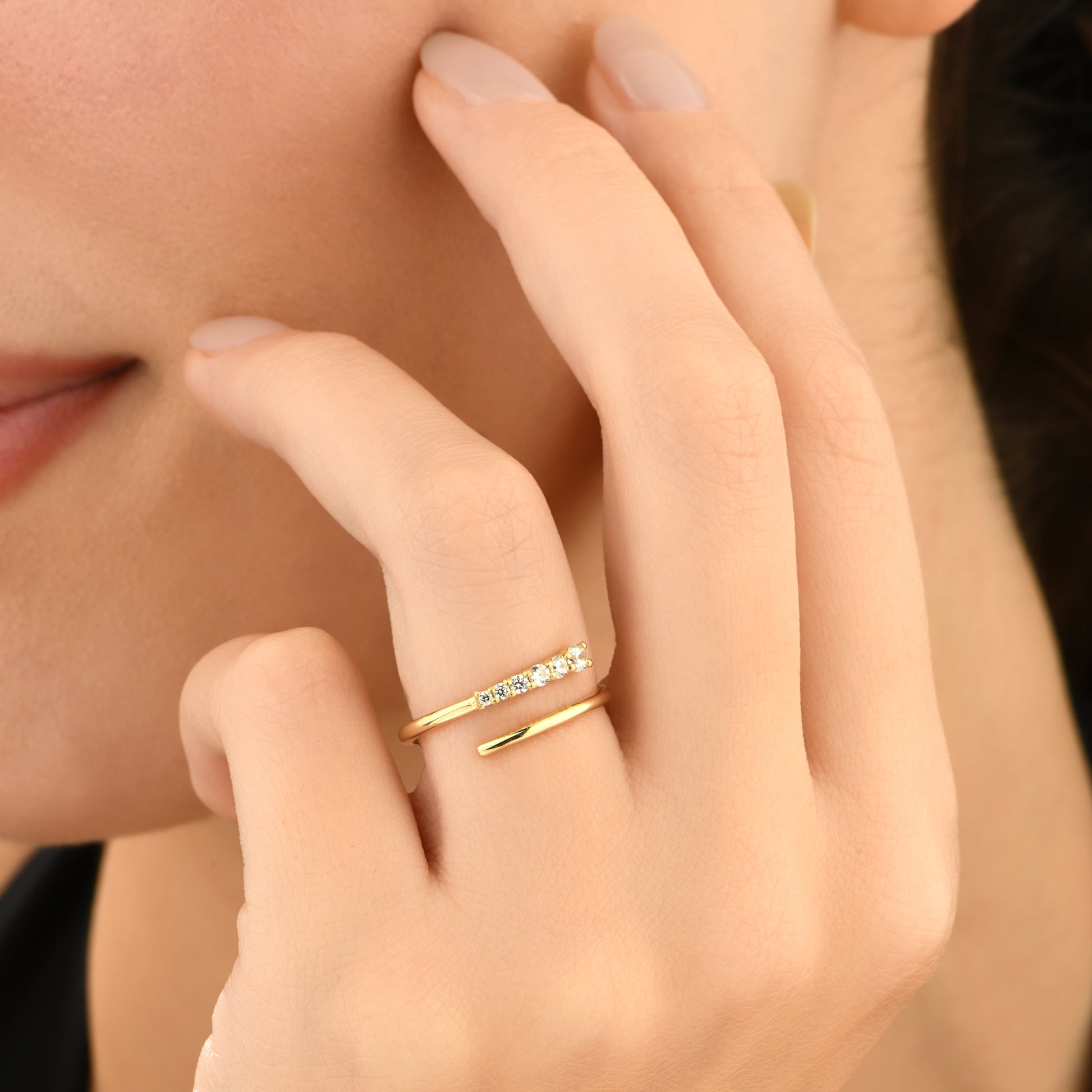 Taşlı Spiral Altın 14 Ayar Yüzük
