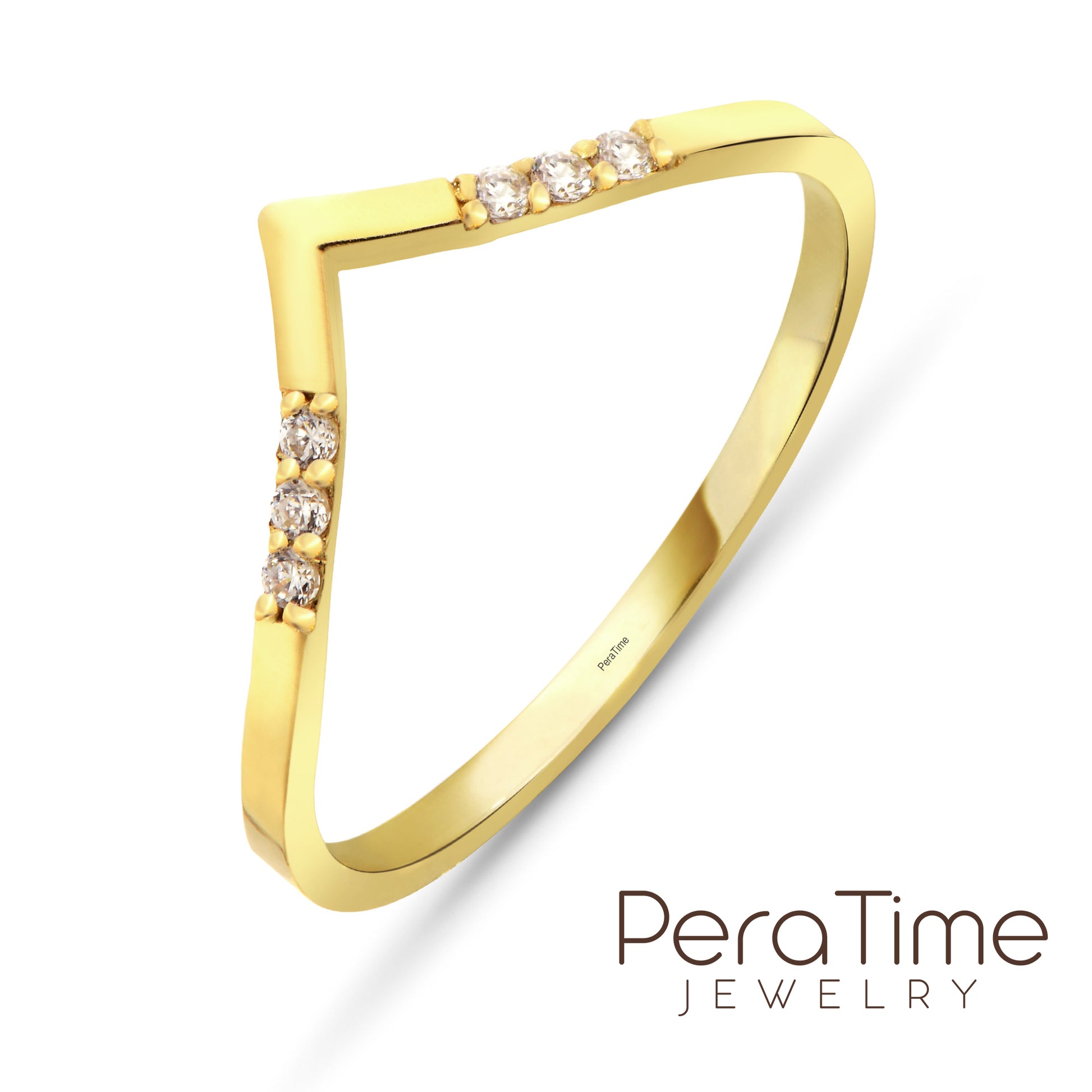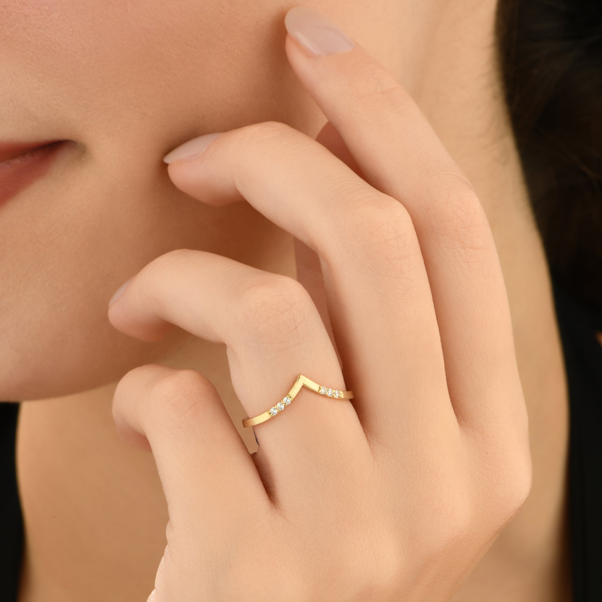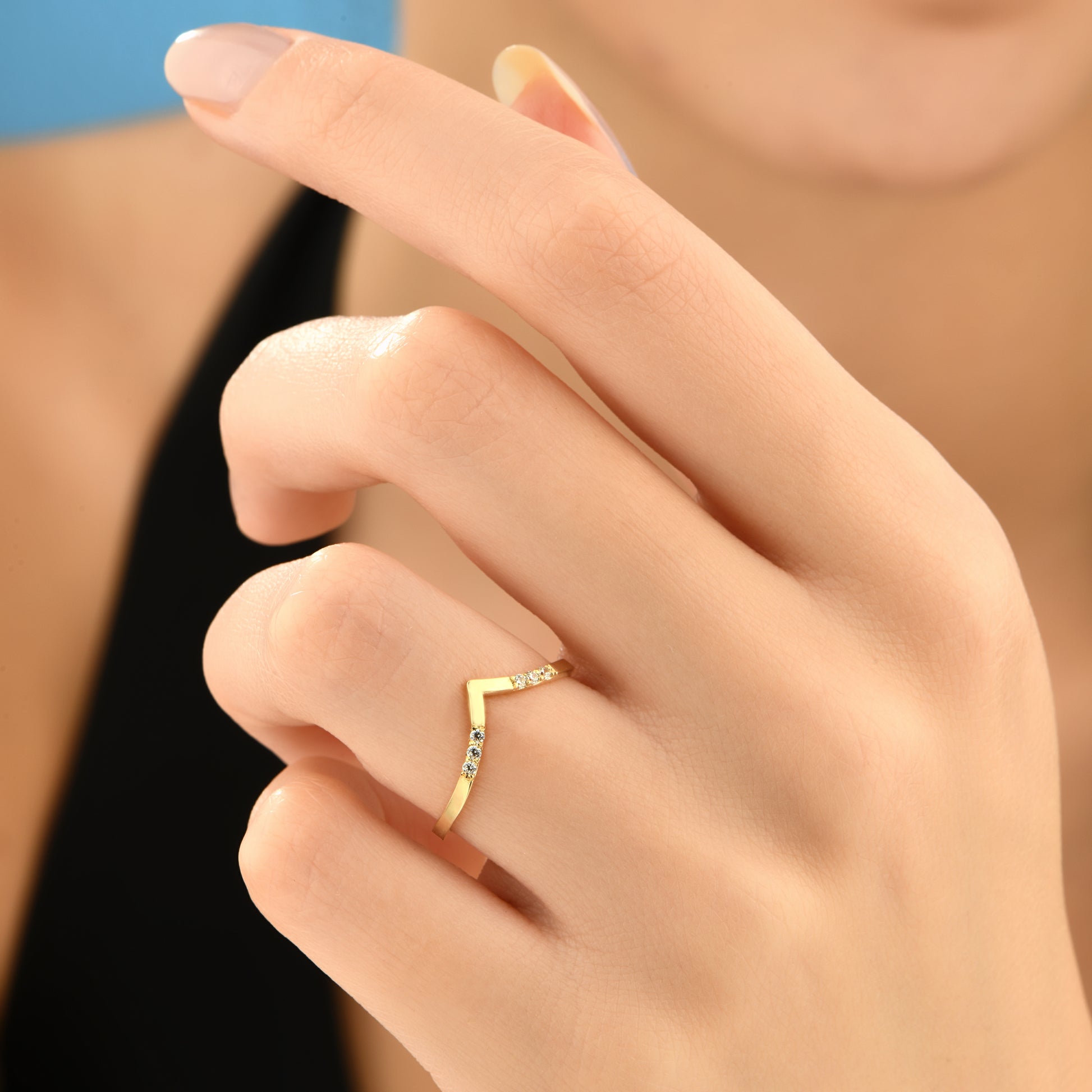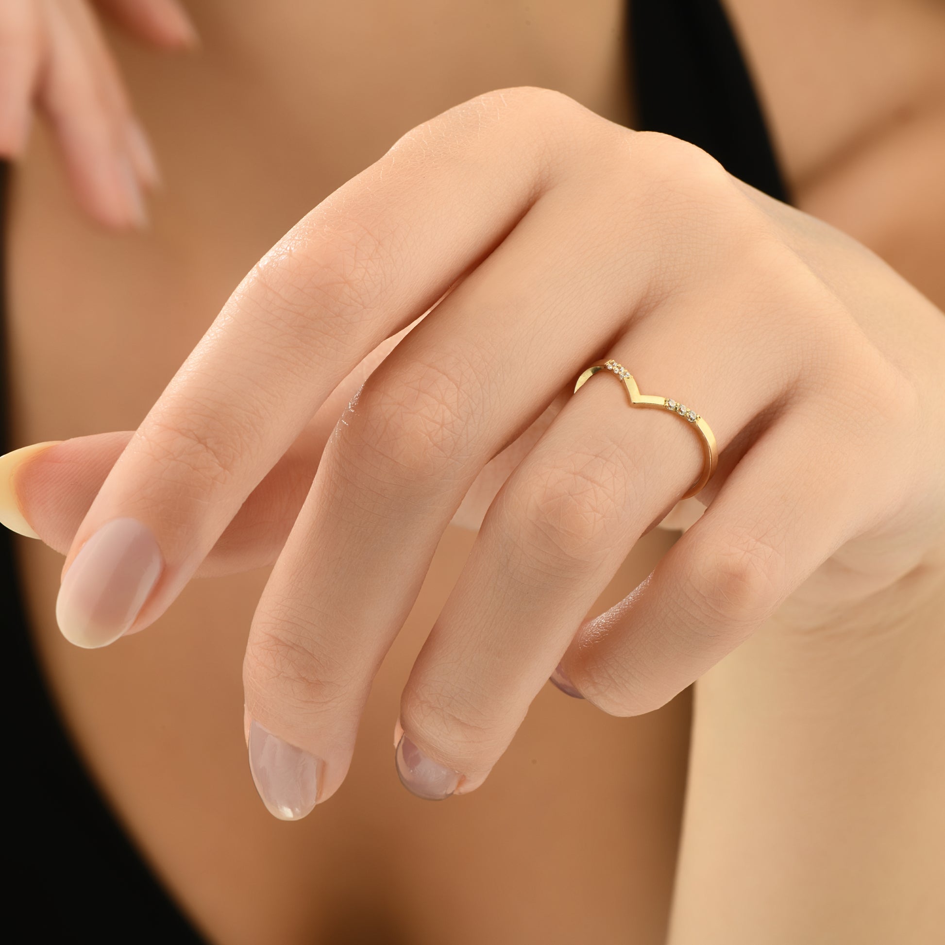 Minimalist ve estetik çizgiler taşıyan 14 ayar altın chevron yüzük, V formu sayesinde parmağınızda zarif ve şık bir görünüm sunar. Tek başına veya diğer yüzüklerle kombinleyerek stilinizi tamamlayabilirsiniz.