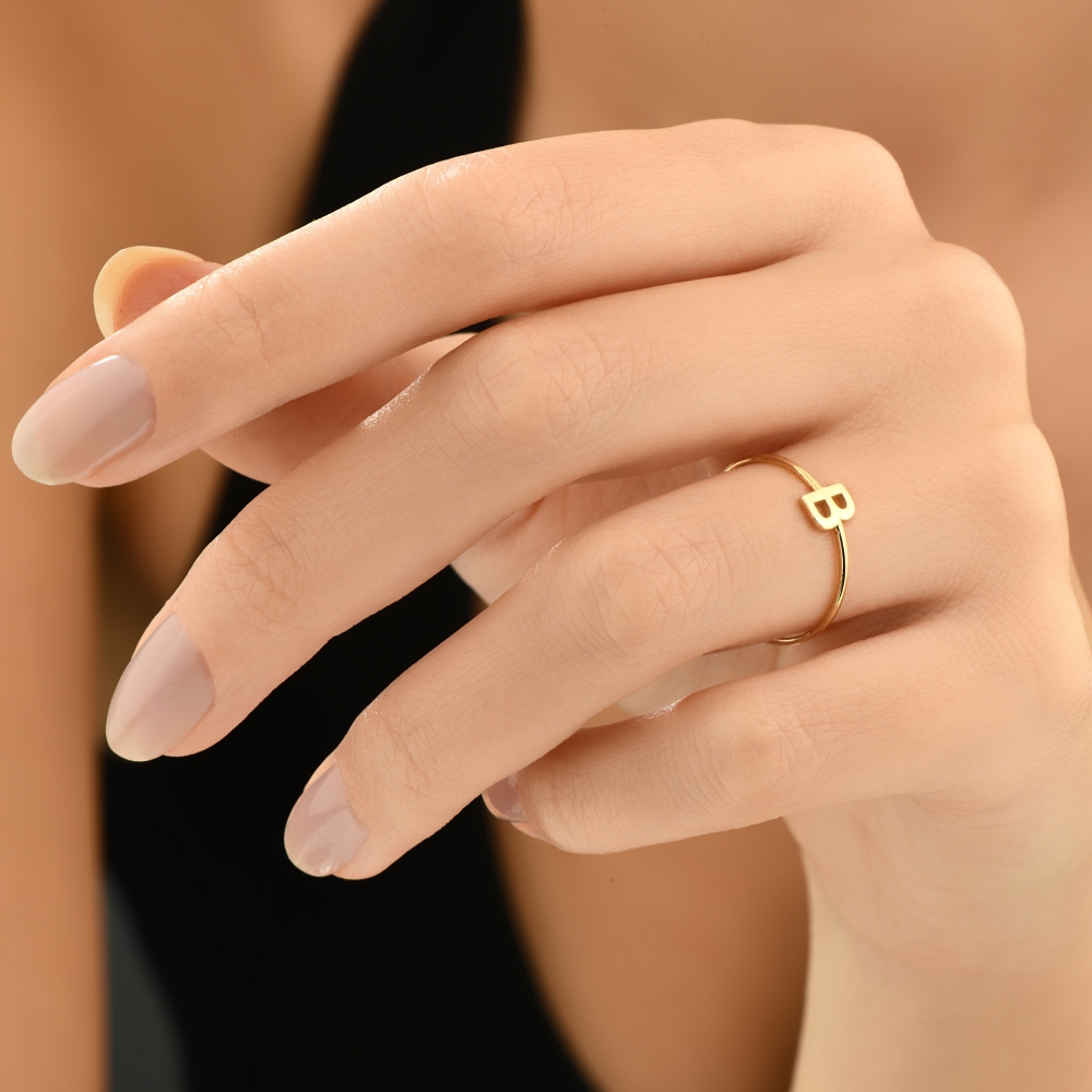 Minimal Markiz Tasarım 14 Ayar Altın Yüzük