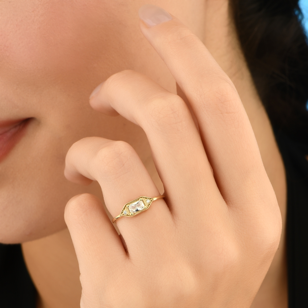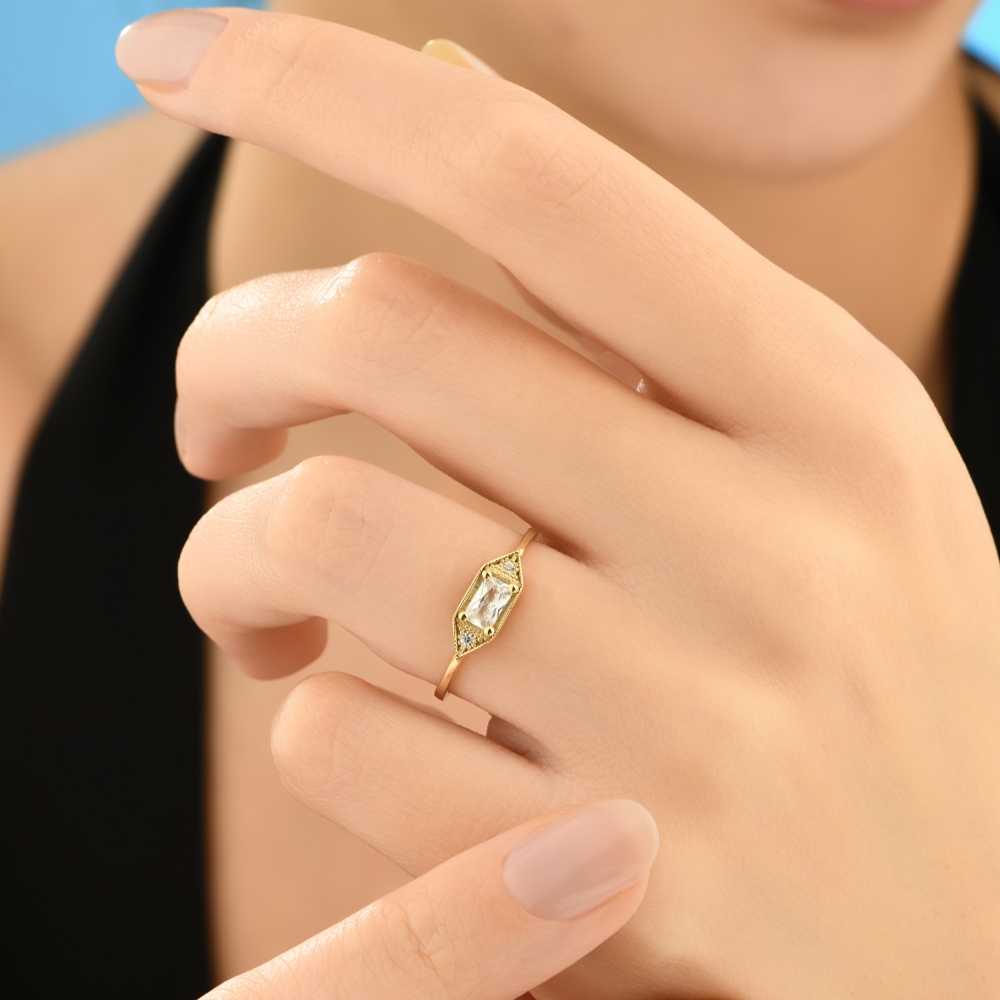 Taşlı Minimal Tasarım 14 Ayar Yüzük