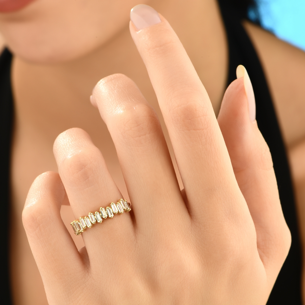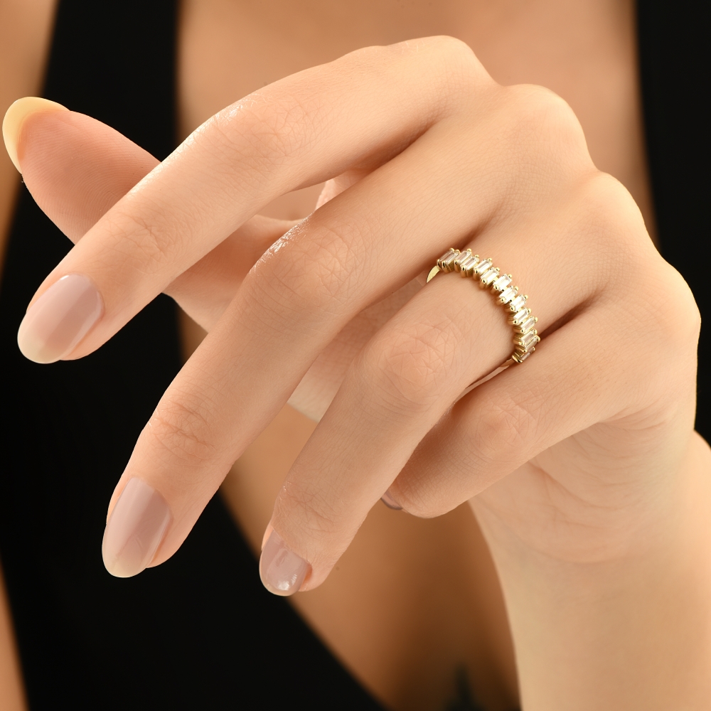Üçgen Sıralı Minimal Taşlı Altın Yüzük