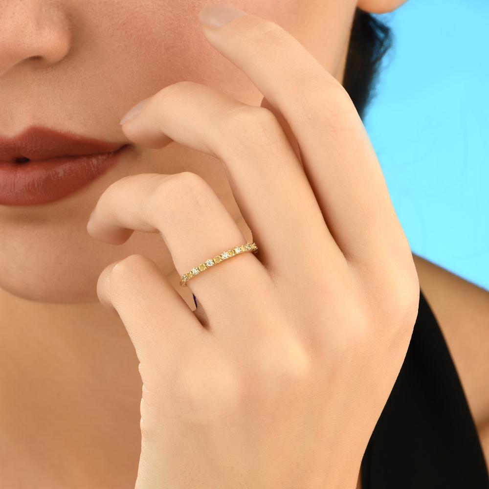 Minimal Taşlı Defne 14 Ayar Altın Yüzük