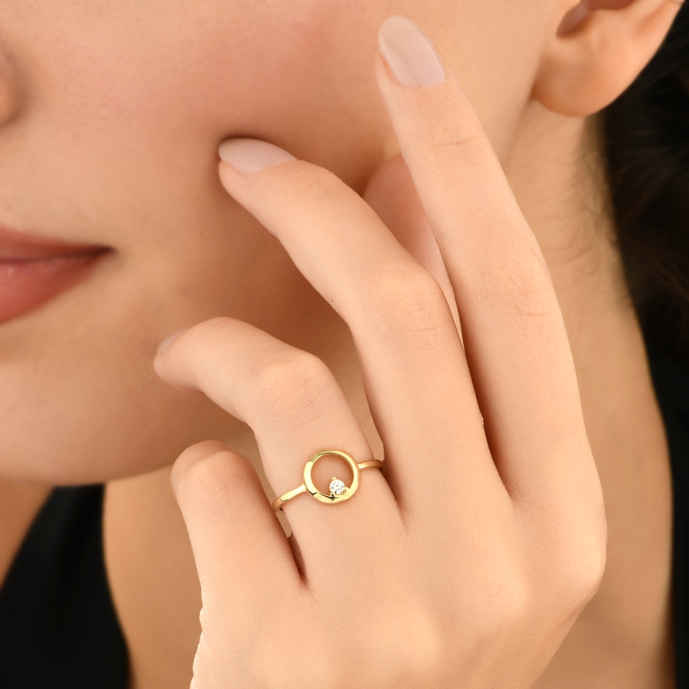 4 Tırnaklı Minimal Altın Tektaş Yüzük
