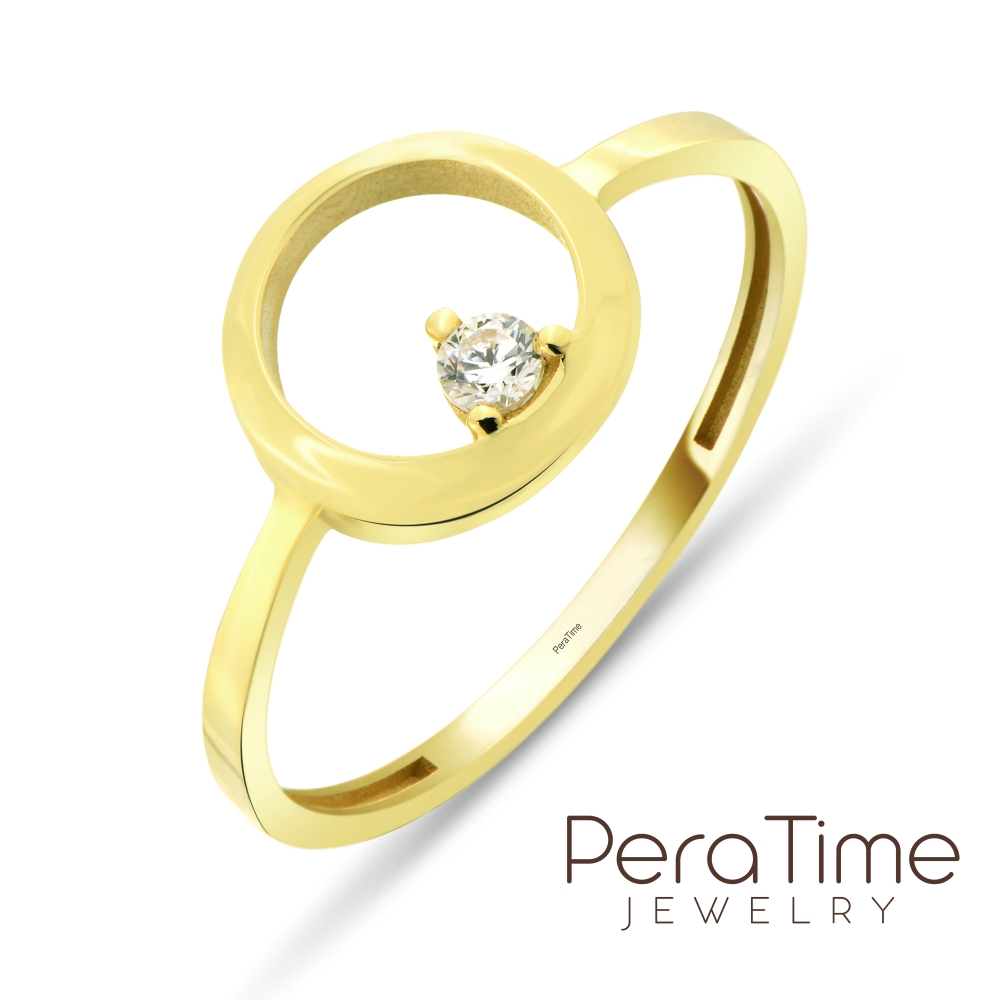 Taşlı Spiral Altın 14 Ayar Yüzük