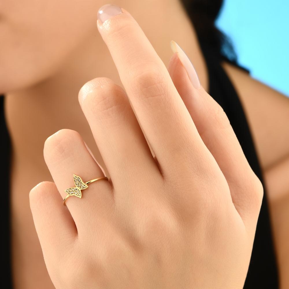 Markiz Taşlı Kelebek 14 Ayar Altın Yüzük