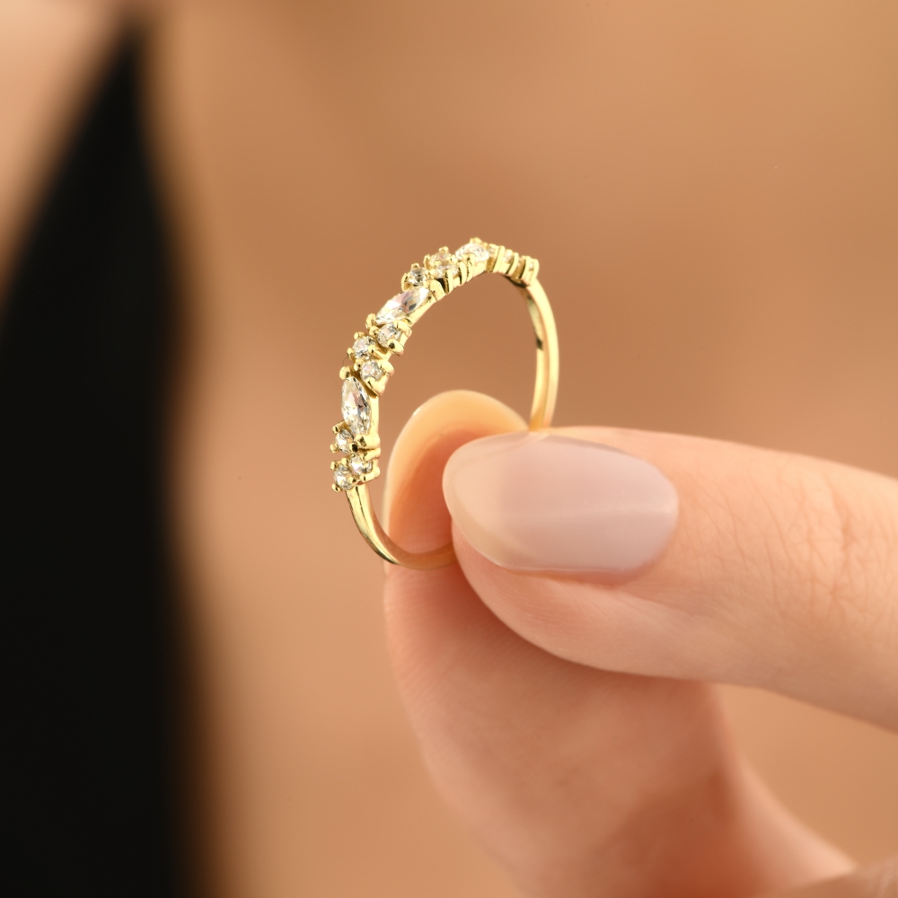Sıra Taşlı Alyans 14 Ayar Altın Minimalist Yüzük