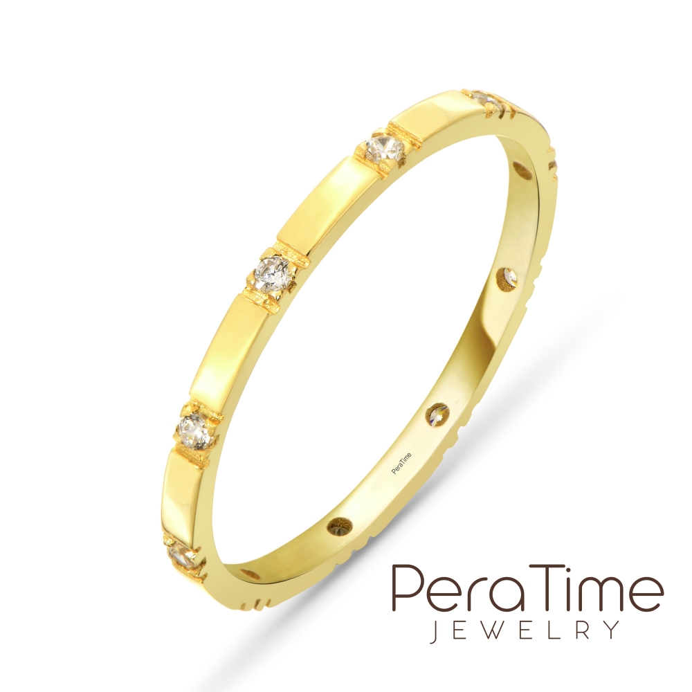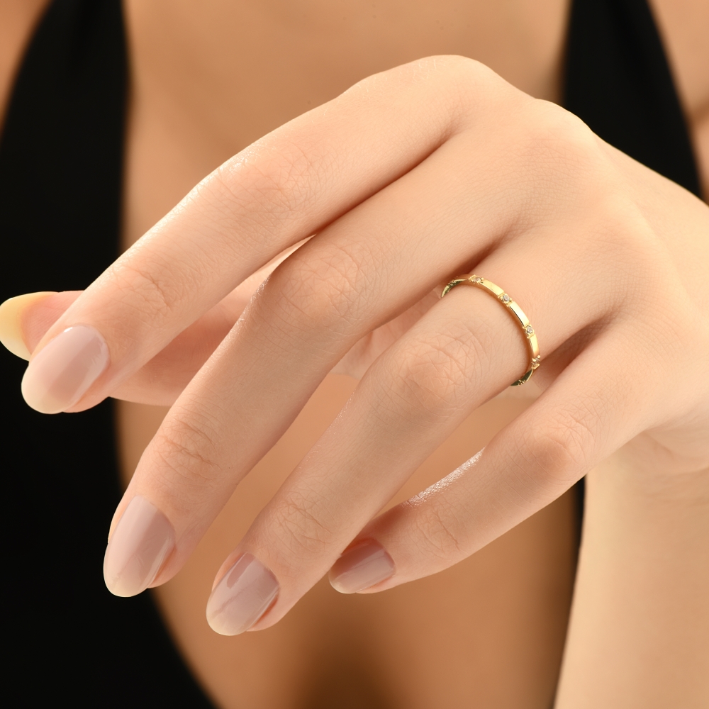 Üçgen Sıralı Minimal Taşlı Altın Yüzük