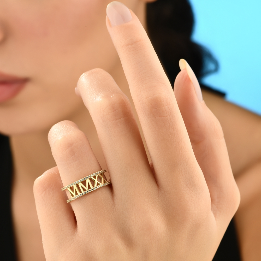 Halka Tasarım Taşlı 14 Ayar Altın Yüzük
