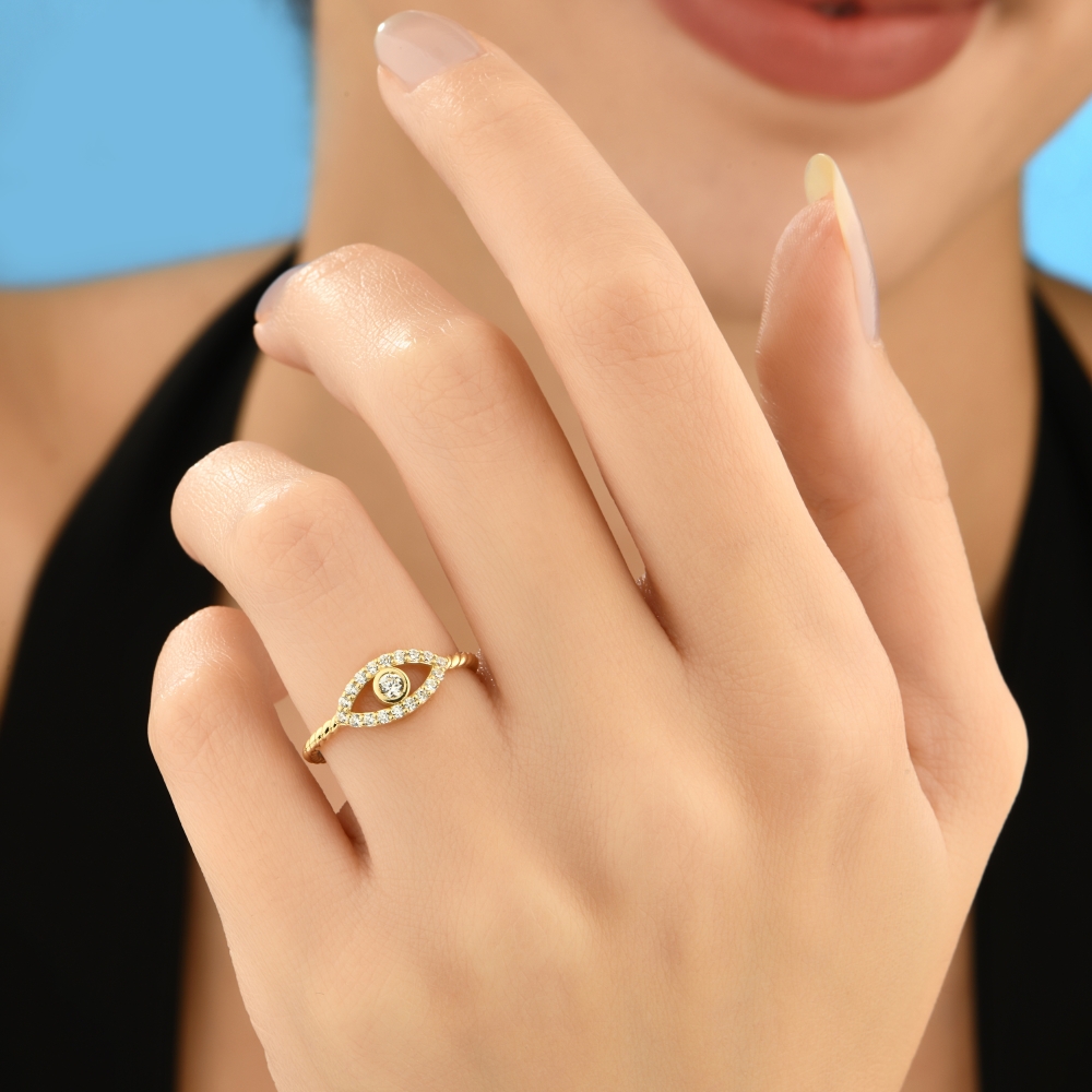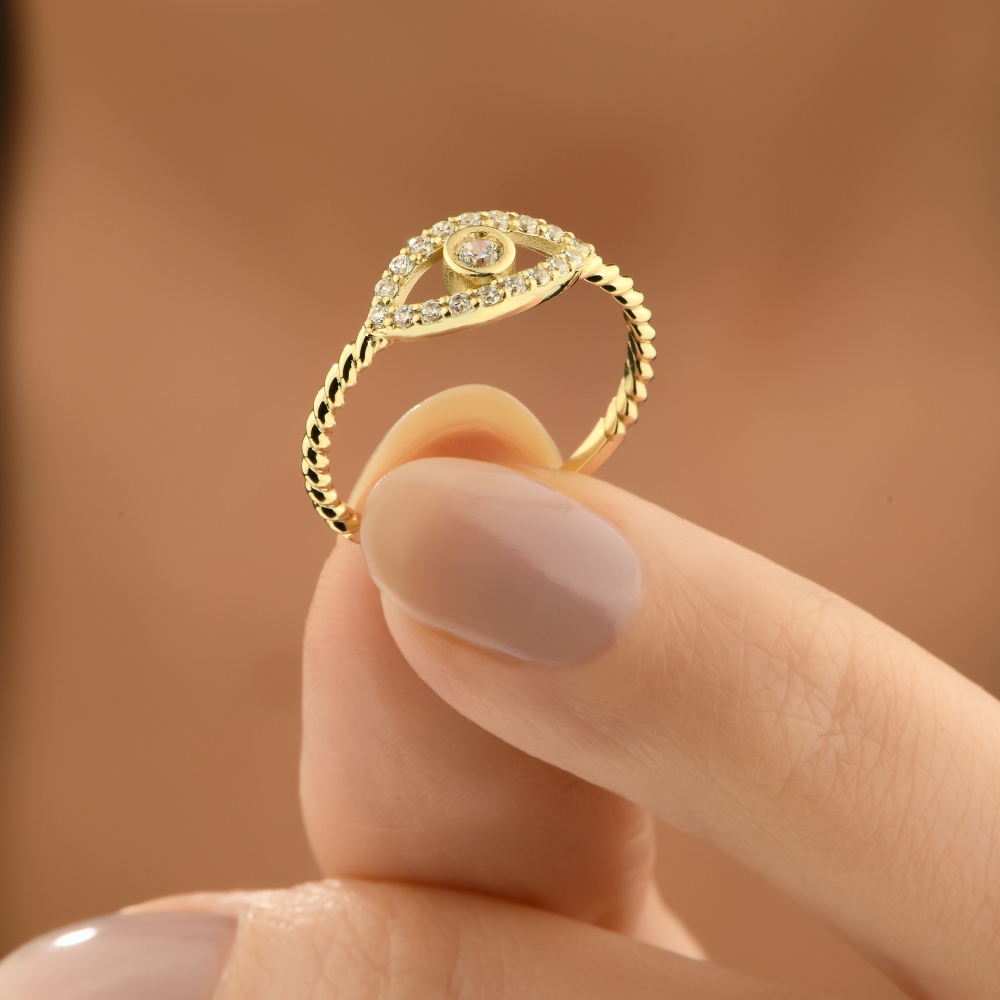 Antik Nazar Göz 14 Ayar Altın Yüzük